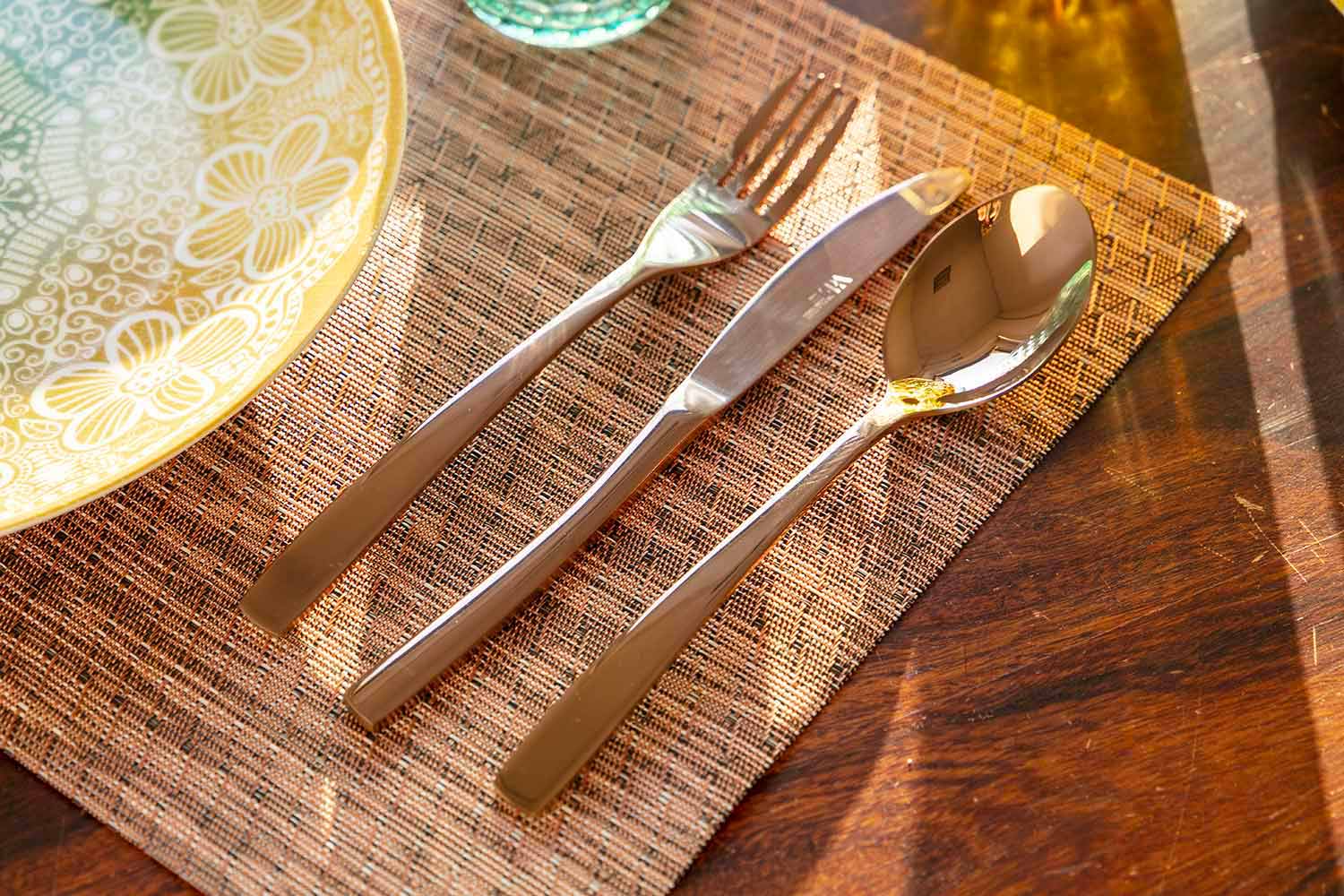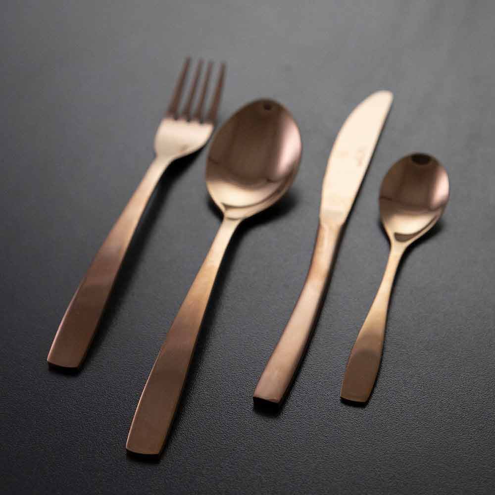 Seti përbëhet nga 6 lugë çaji, 6 lugë, 6 pirunë, 6 thika.
