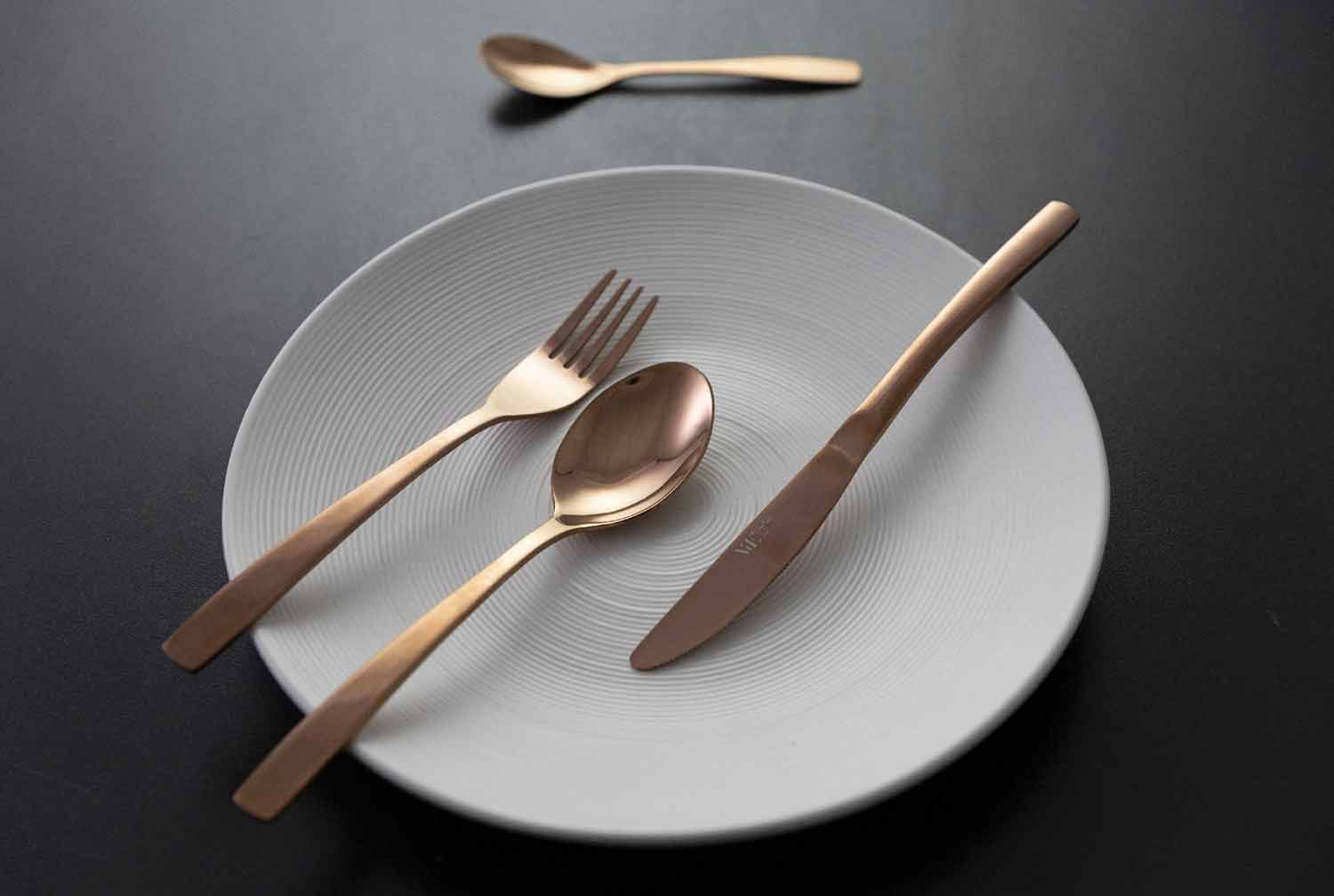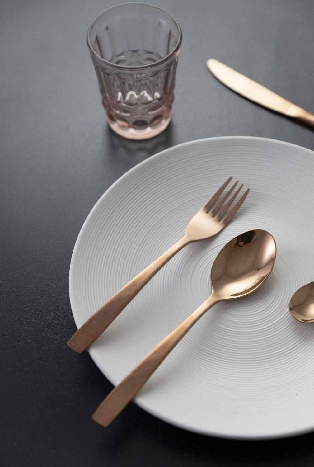 Takëmet prej luksoze 24 copë të vendosura në çelik të kompletuara me dizajn.