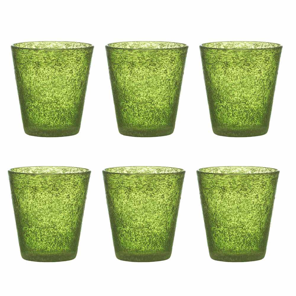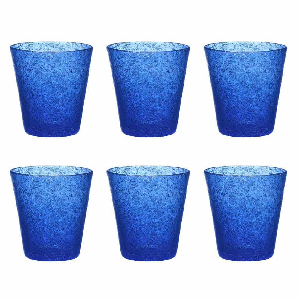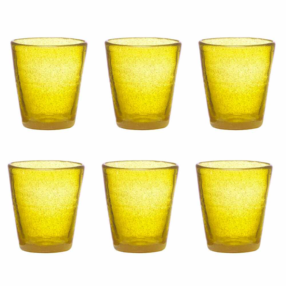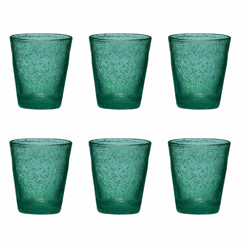 Përshtatshme për të gjitha stilet e mise në vend, syzet e ndritshme të tavolinës për ujë ose pije janë bërë nga qelqi i çelur transparent me një ngjyrë paste në njëmbëdhjetë hije të gjalla. Materiali eklektik dhe transparent pasqyron të gjithë thelbin e pijeve ndërsa prodhimi në lulëzim, me karakteristikat "flluska" të përfunduara, e bën estetiken e gazuar.