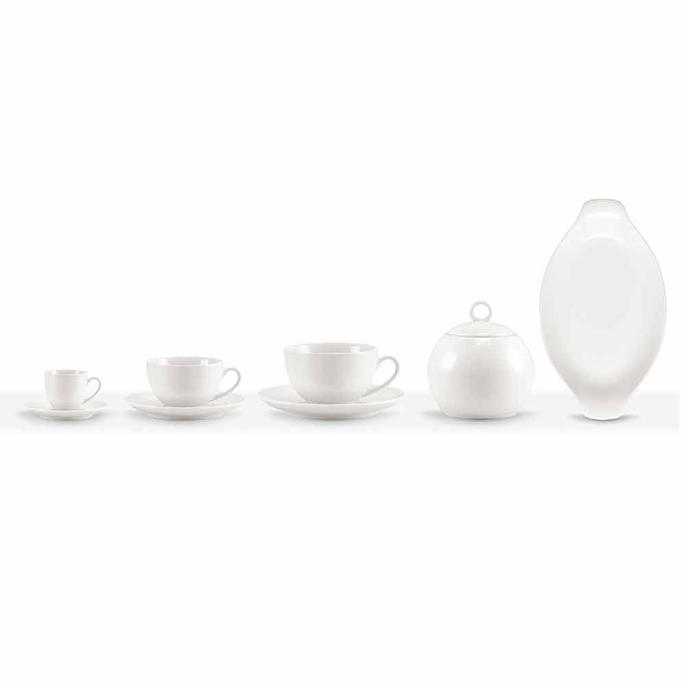 Shërbimi i filxhanëve të kafesë, çajit, mëngjesit me tas sheqeri dhe enë me një dizajn modern në porcelan të bardhë, 20 copë.