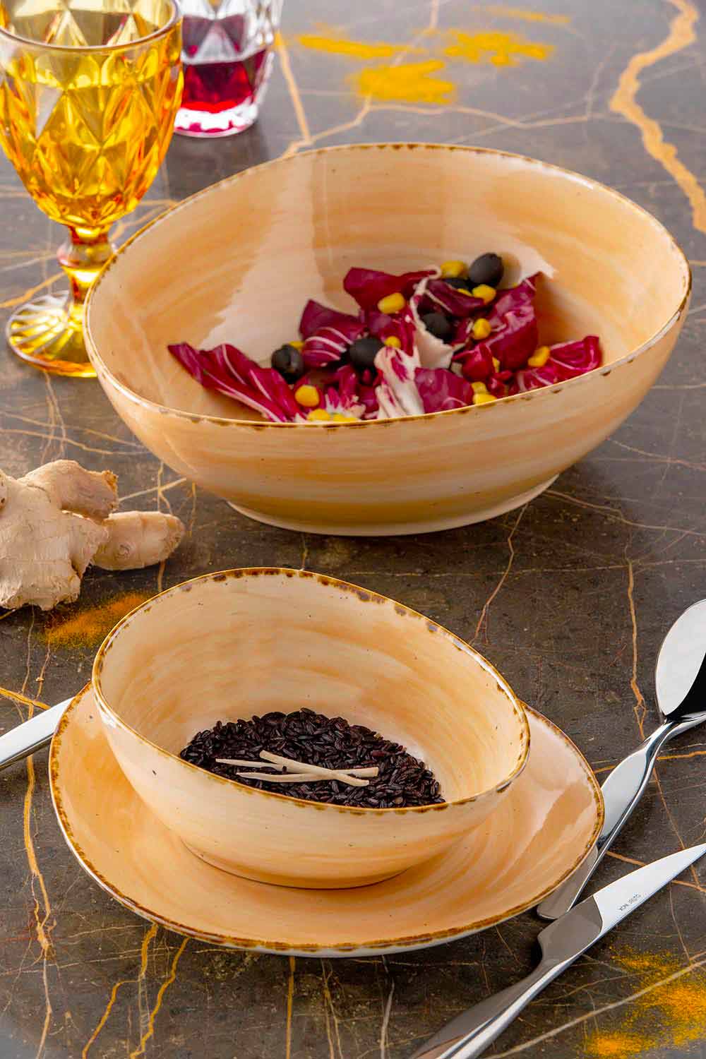 | Masat | Pllaka e sheshtë: 28x26 cm; Pjata me makarona: 28.5 cm; Pllaka e thellë: 22.5x20x6.5 cm; Lakër: 22x20 cm; Mbajtësi i vendit ose pllaka e shërbimit: 32.5 cm |