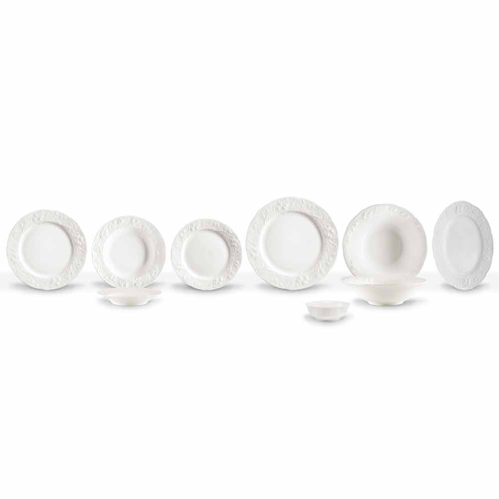 Shërbim për darkë të vendosur në porcelan të bardhë të zbukuruar, 27 copë.