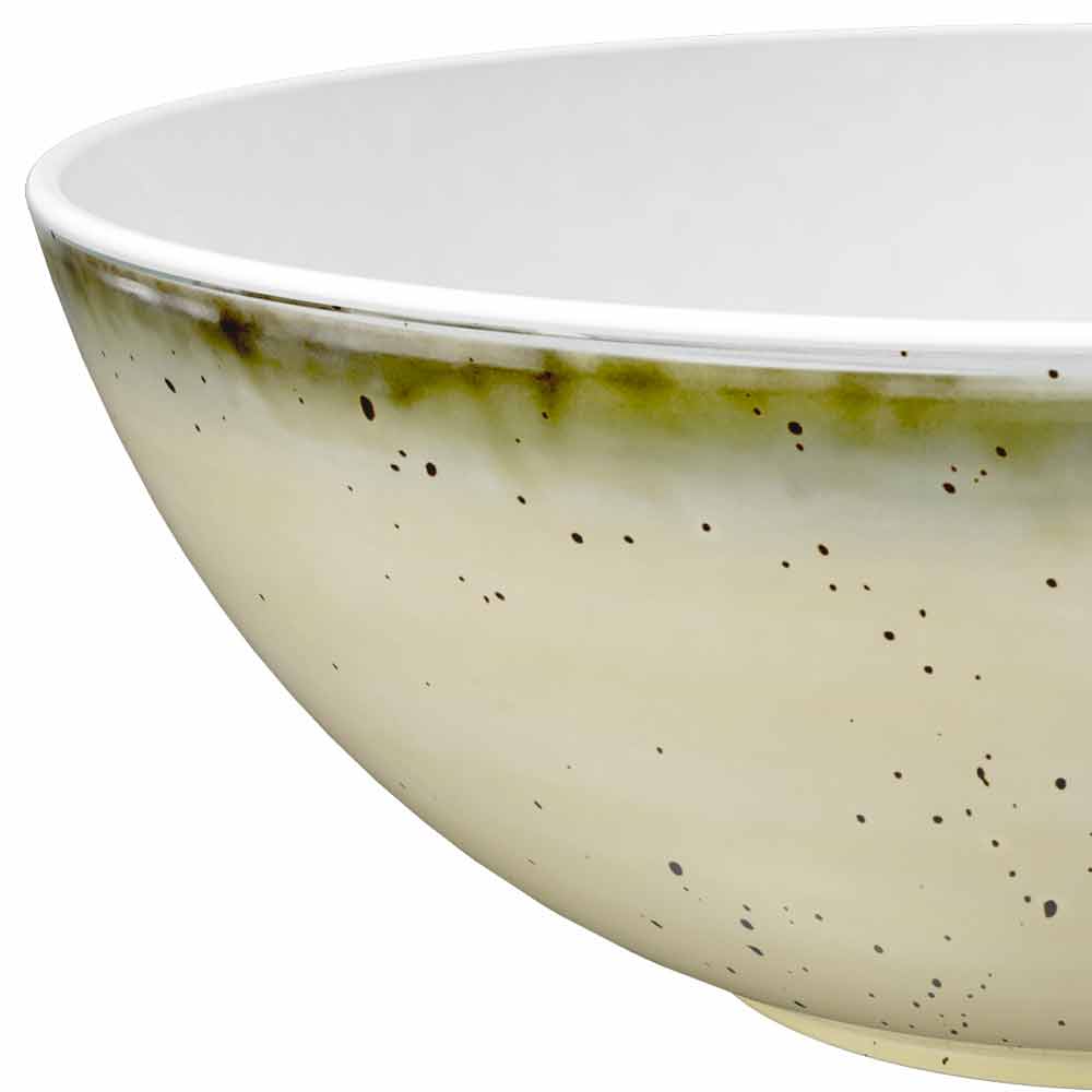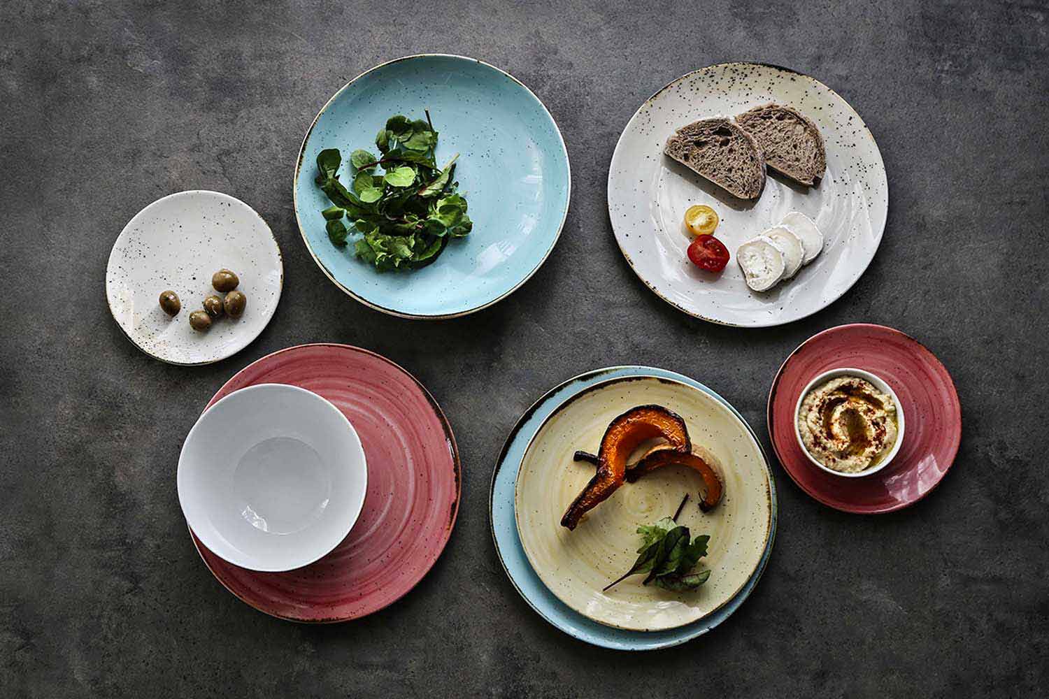 Dizajni i këtij kompleti për pjatat e darkës paraqitet si i thjeshtë, elegant dhe i rafinuar, i bërë nga kalçomania me ngjyra të ndryshme, për një stil fshatar dhe të gjithanshëm.