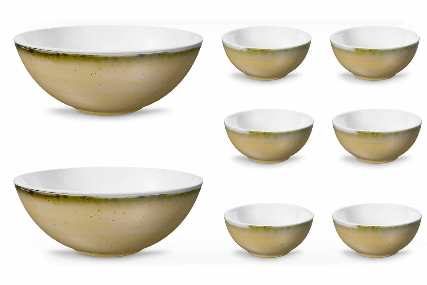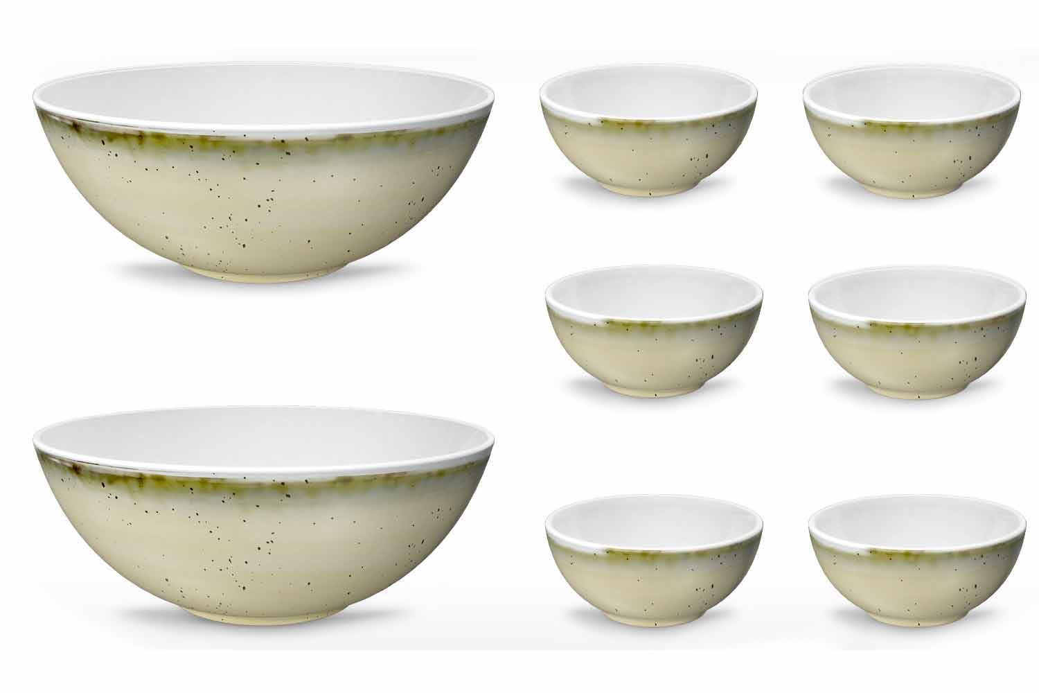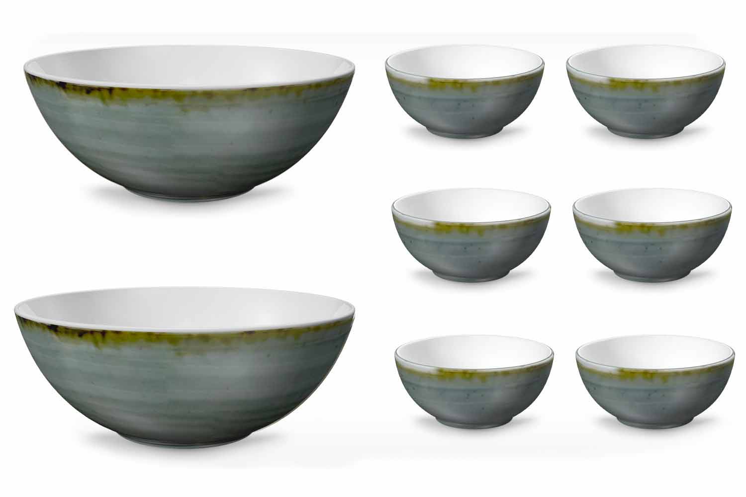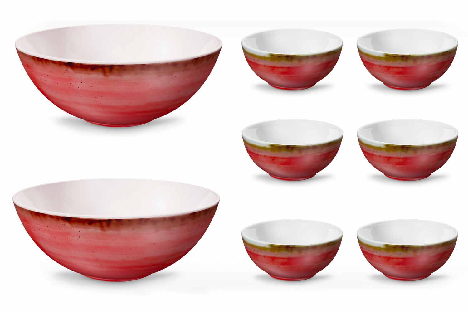 Akullore ose sallatë frutash me dizajn modern, tas i vendosur në porcelan me ngjyrë, 8 copë.