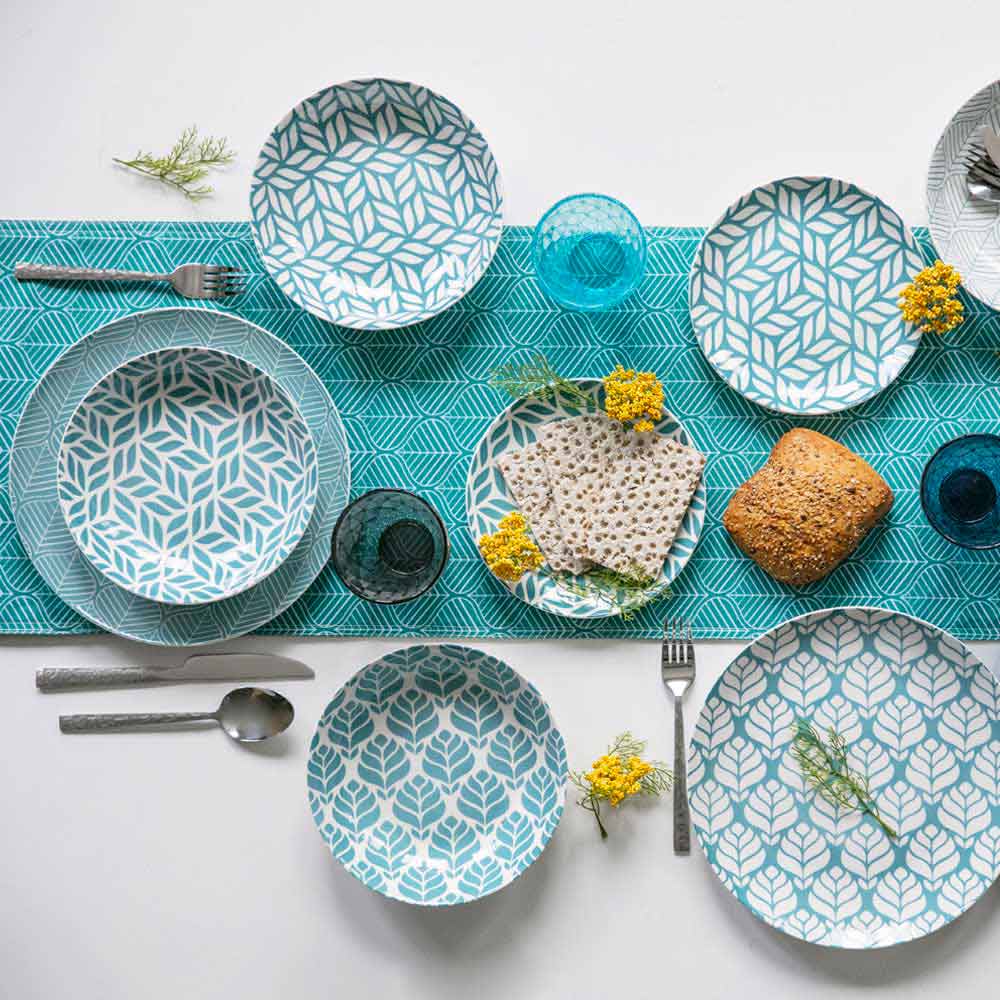 Set darke ne porcelan me ngjyra dhe dekorime elegante te dizajnit, 18 cope.