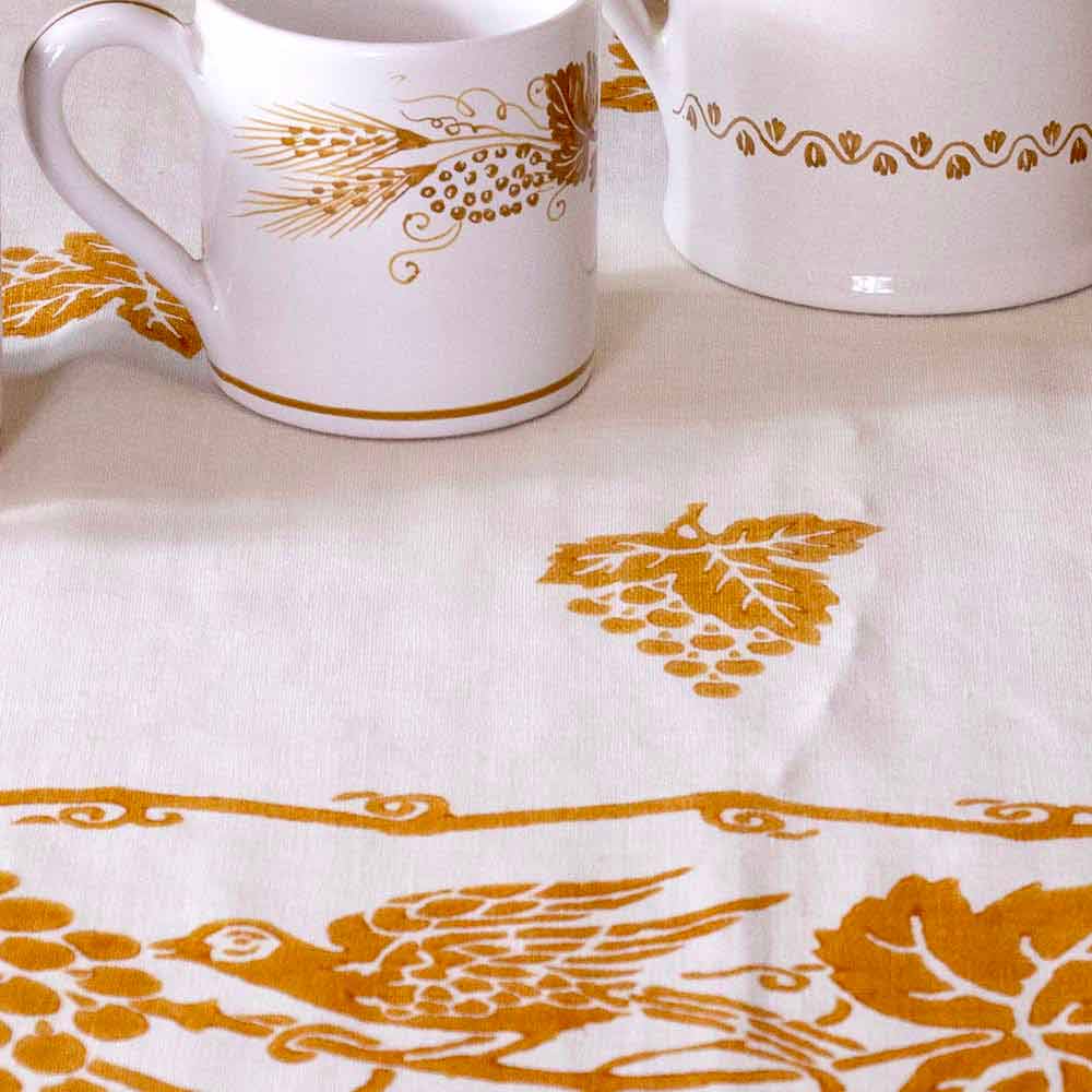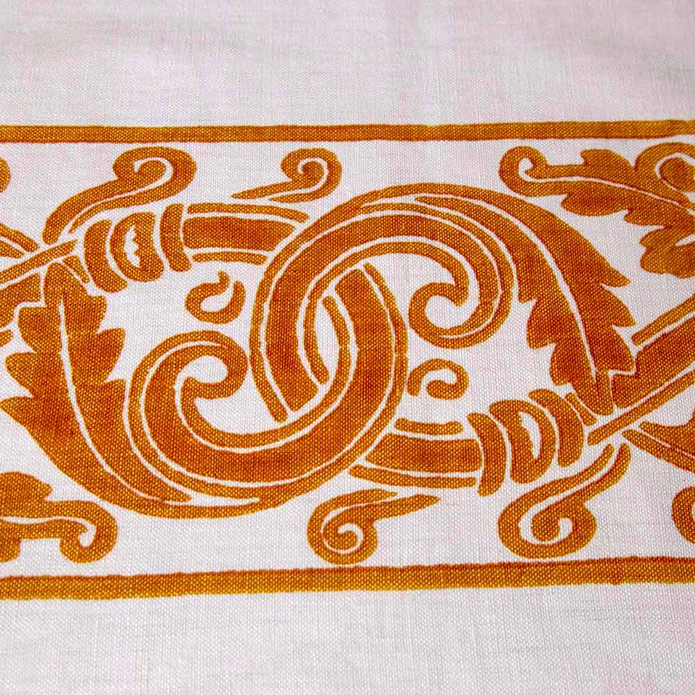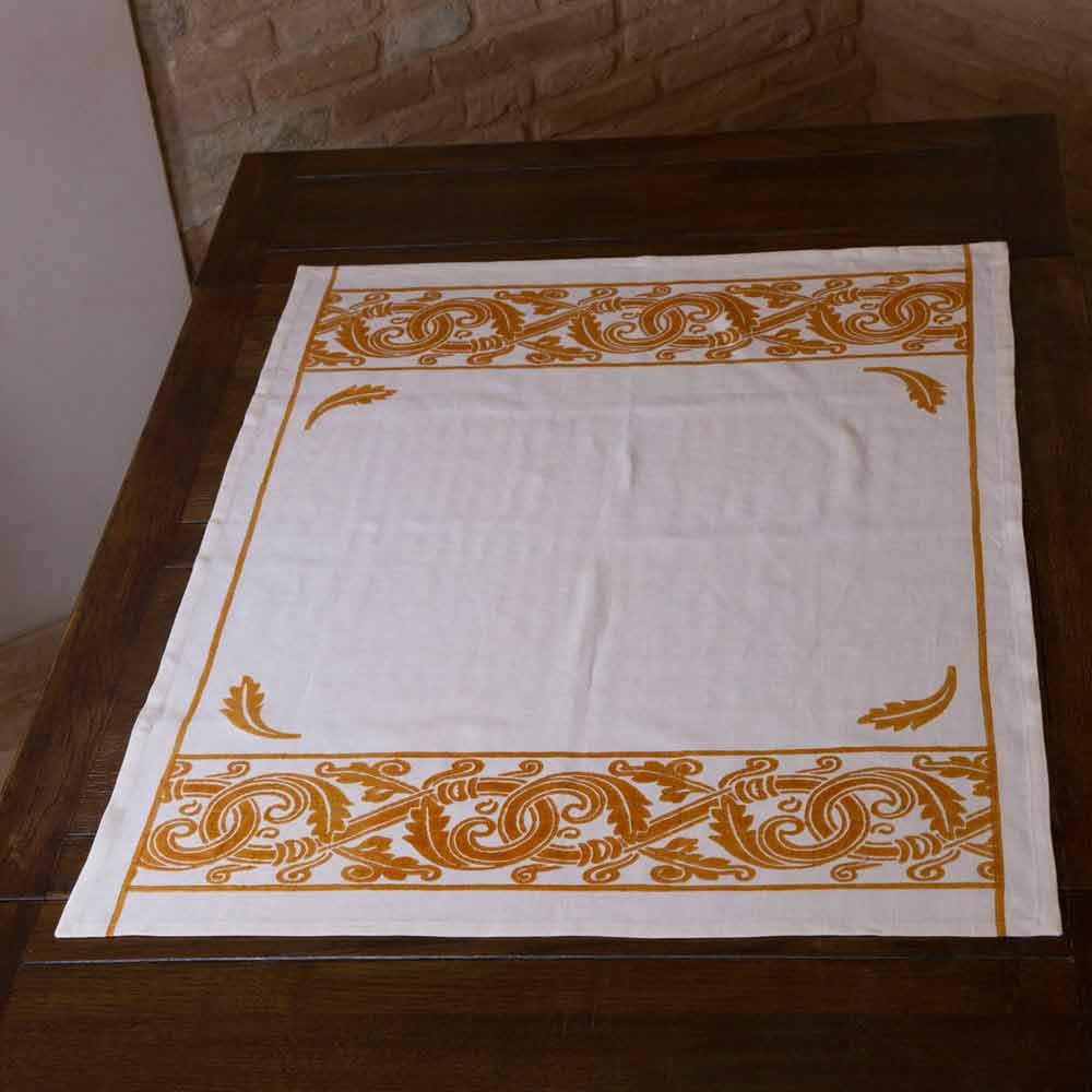 Shërbimi i mëngjesit artizanal (placemat dhe 2 peceta) të bëra prej liri të pastër me shtypje artistike në pëlhura antike të dekoruara me dorë, të disponueshme në tre variante, një cilësi unike e cilësisë e bërë në Itali.