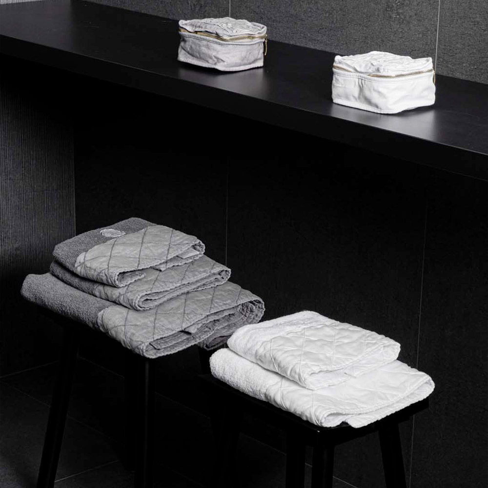Peshqirë për fytyrë dhe mysafirë dhe peshqir pambuku me dekor gjeometrik, prodhuar në Itali.