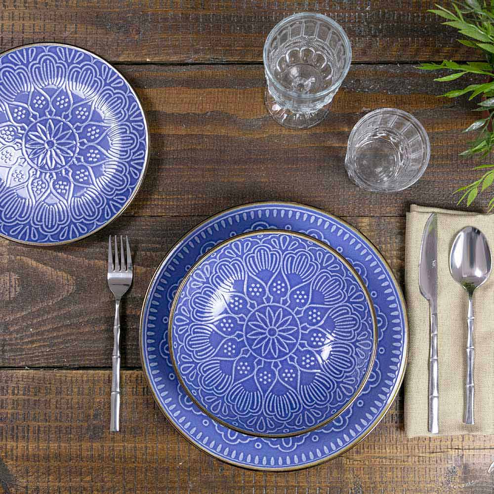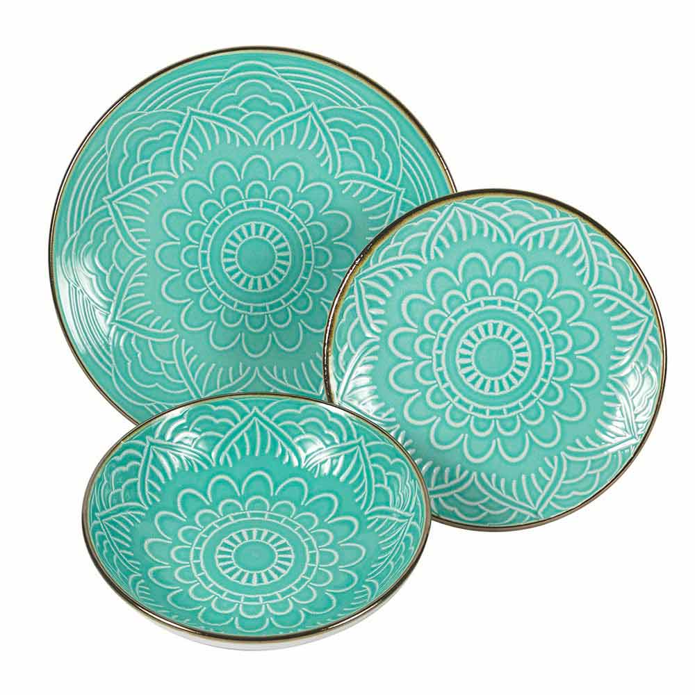 Shërbim tryeze në dolomit gri, bruz ose blu të fortë me zbukurime të relievit, 18 copë.