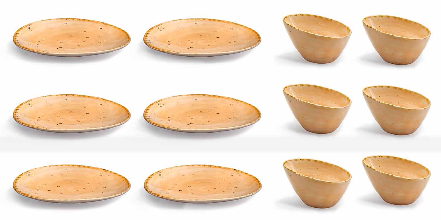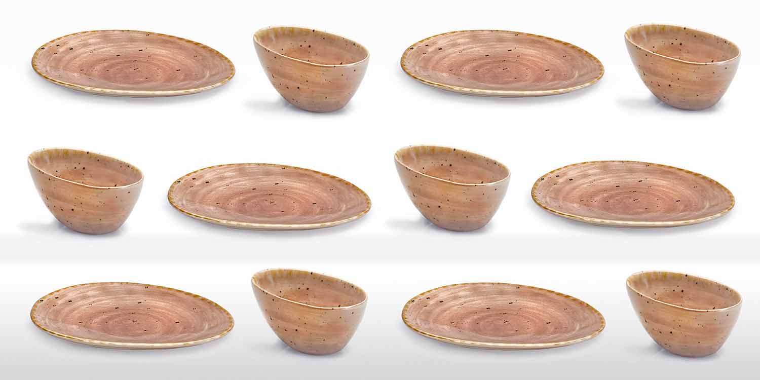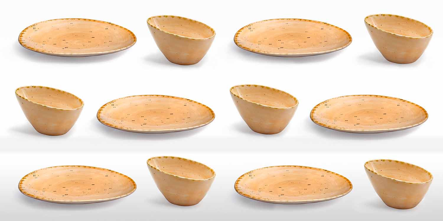 Origjinaliteti : format e çrregullta, dekorimet me furça të pasakta dhe me një efekt të spikatur të përfunduar dhe pikturuar me dorë dhe buzë antik, theksojnë stilin e thjeshtë dhe tokësor të koleksionit. Do ndryshim midis një pjese dhe një tjetër është që të konsiderohet si një karakteristikë shtesë e vlerës dhe personalitetit, duke e bërë secilën pjesë unike.