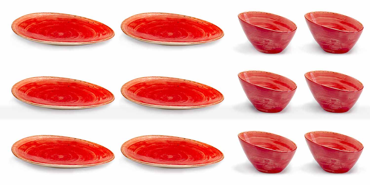 e kuqe djegëse: një ngjyrë pikante dhe magjepsëse e aftë për të forcuar linjat e buta dhe bindëse të enëve. Një aluzion tërheqës dhe i thellë i kuq për prekjet imponuese të individit gjatë shërbimit.