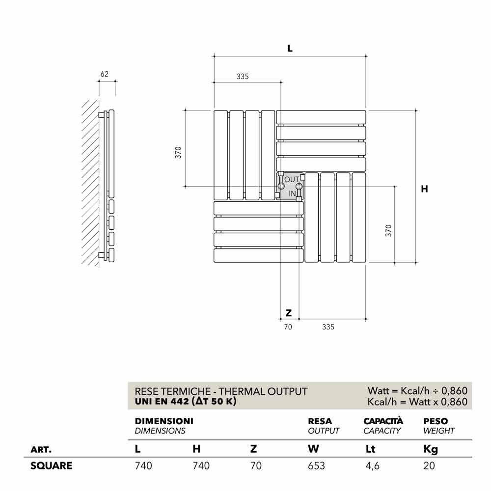 Radiator hidraulik katror i projektuar i prodhuar në Itali Square nga Scirocco H Radiator në formë katrore në versionin hidraulik, i kompletuar me lagështues qendror me ngjyrë. Linja katrore me një prekje bashkëkohore. Një radiator projektuesi për t'u instaluar në mur si një vepër arti. Radiatori dhe lagështuesi i disponueshëm në një gamë të gjerë ngjyrash, zgjidhni ngjyrat që ju përshtaten më së miri!