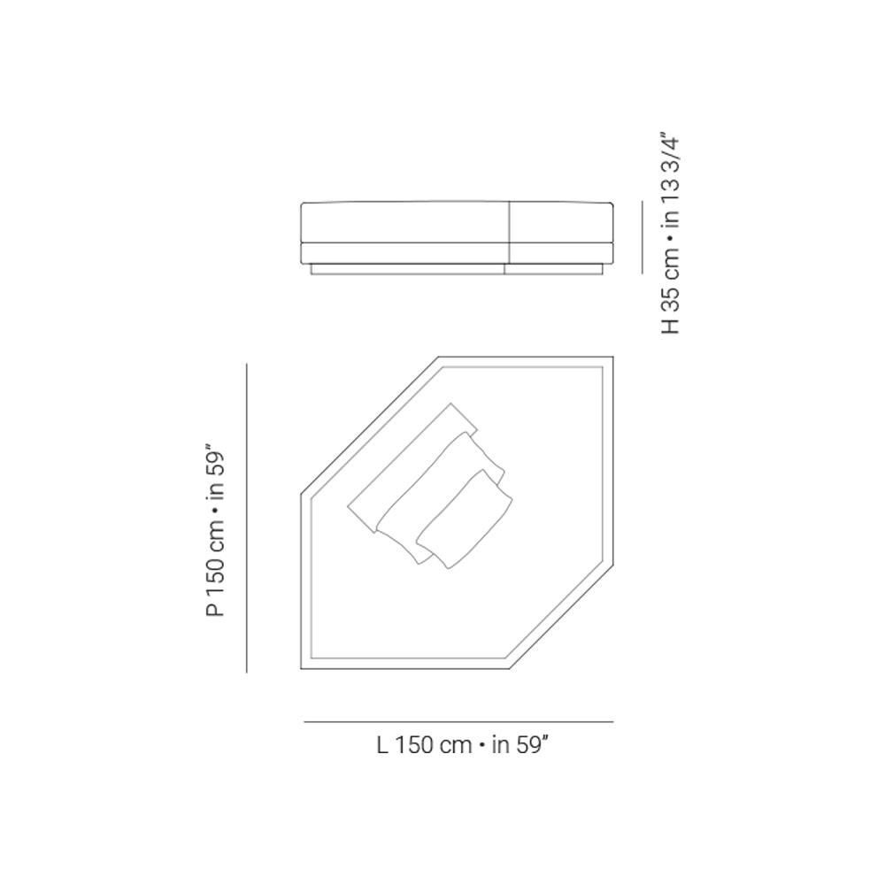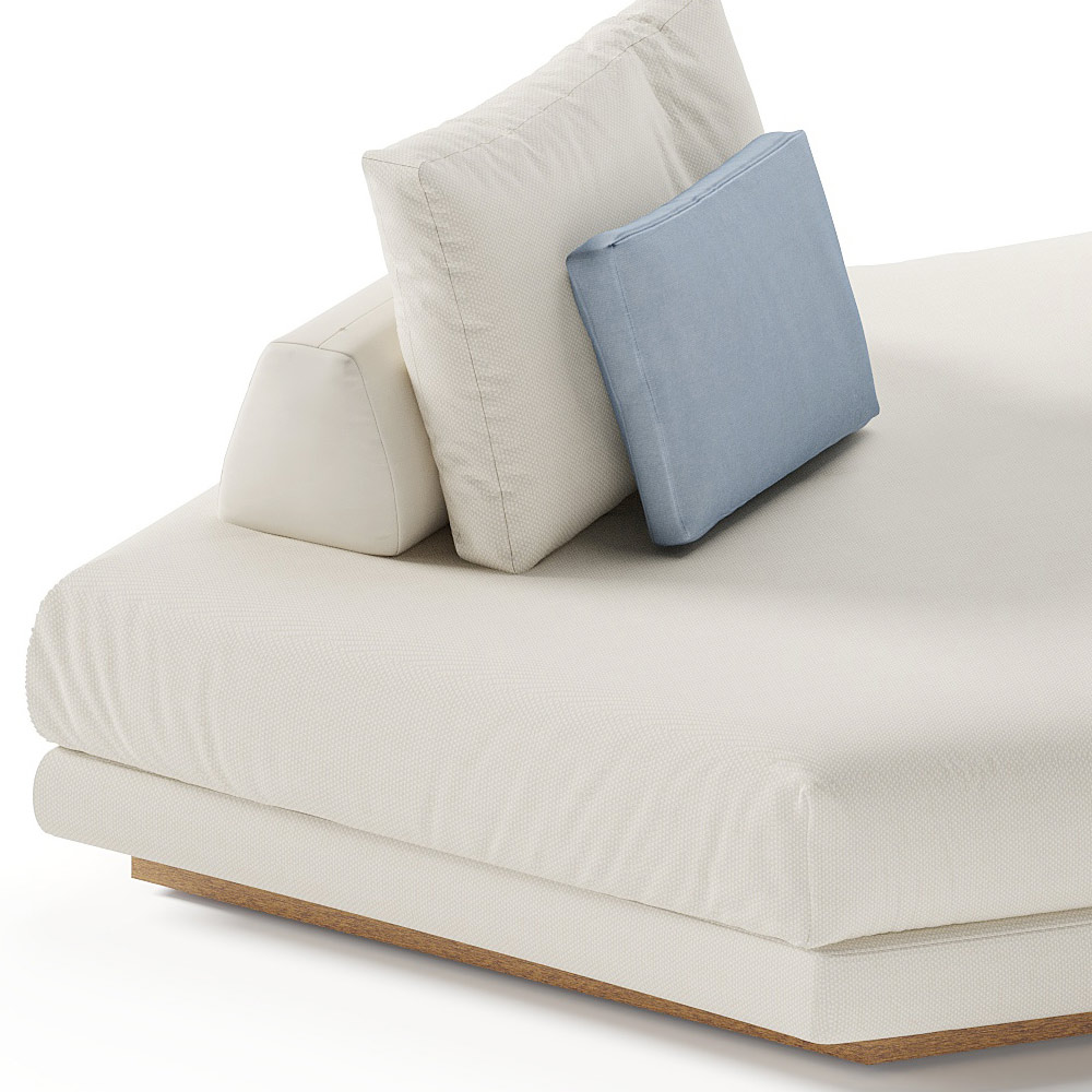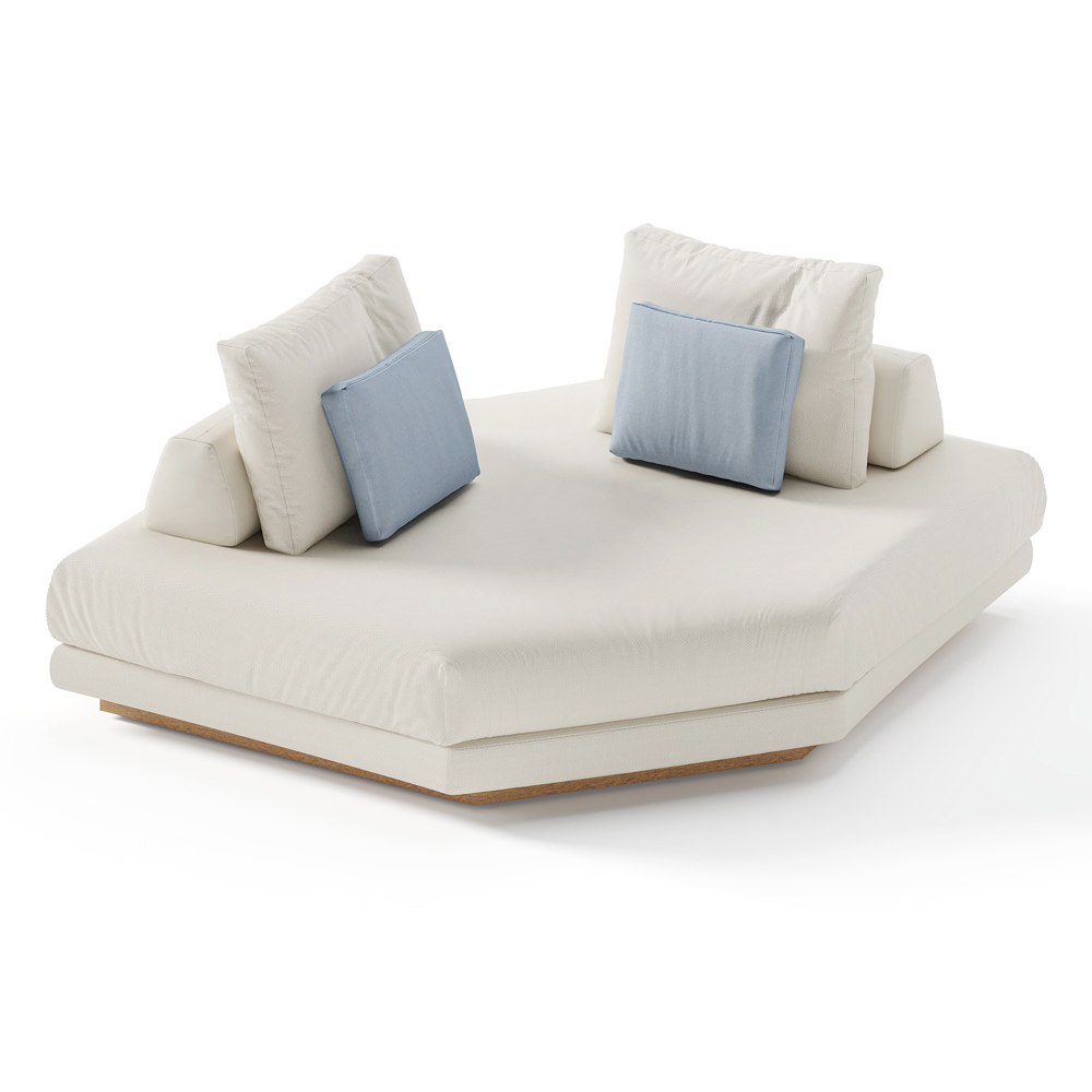 Shezlong kopshti këndor tërësisht i prodhuar në Itali me sedilje dhe shpinë në jastëk të mbushur me pëlhurë . Produkti përbëhet nga një vend i ulët dhe i thellë dhe falë formës së tij bëhet një sistem ftues dhe mikpritës i krijuar për të krijuar një atmosferë të relaksuar dhe joformale. Kjo shezlong qoshe është e përkryer për të bërë çdo ambient unik, duke ofruar lirinë për të rishkruar hapësirat tuaja të jetesës me shije dhe stil. Falë përfundimeve të thjeshta dhe lineare, ai garanton elegancë dhe rafinim për çdo mjedis në të cilin vendoset. Jastëku i mbështetëses është i lëvizshëm dhe mund të vendoset kudo në produkt.