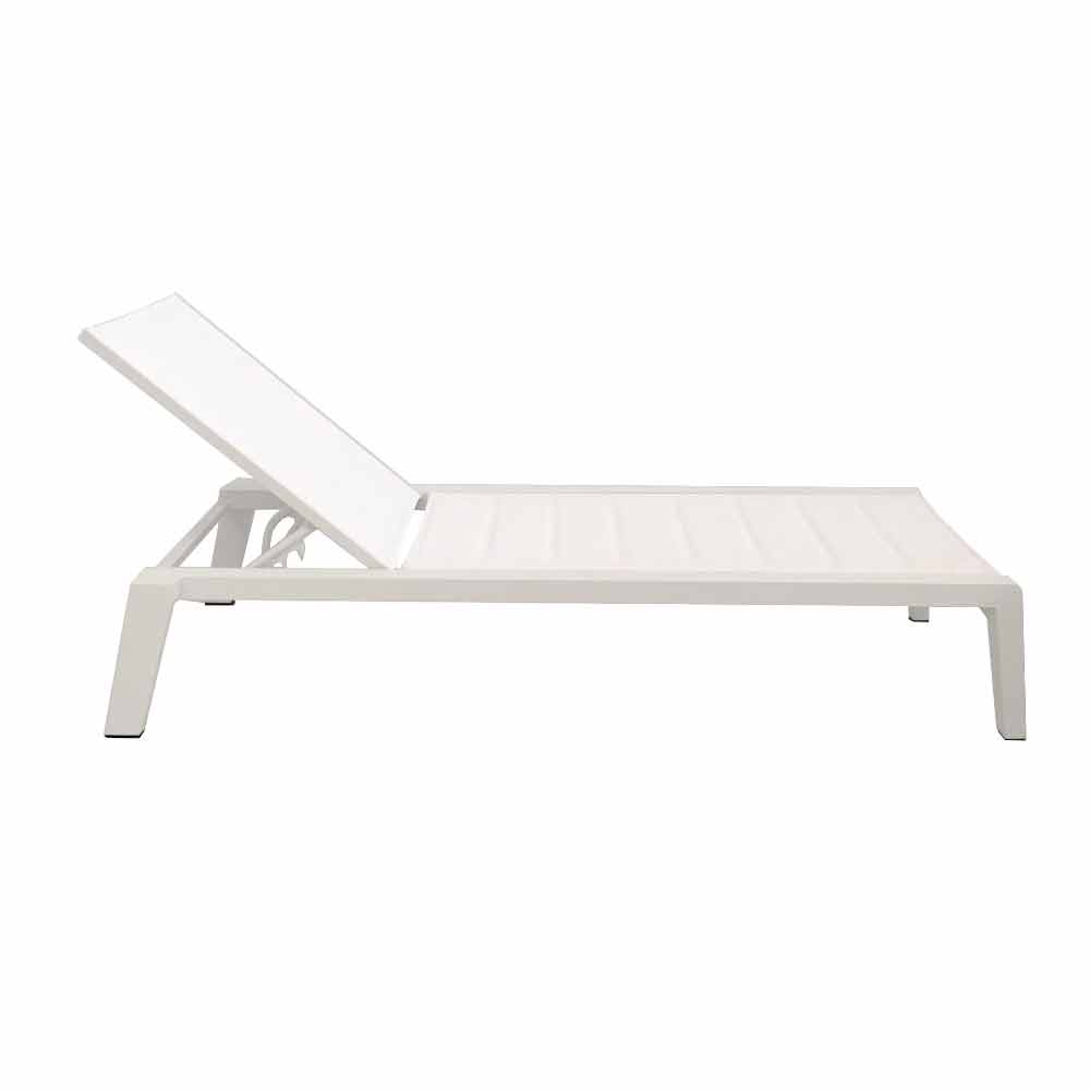 Kjo lounger dielli karakterizohet nga një dizajn i thjeshtë, linear dhe elegant. Ajo përmban një strukturë alumini të veshur me pluhur me pëlhurë tekstile. Mbështetësja e mbështetur siguron rehati maksimale.