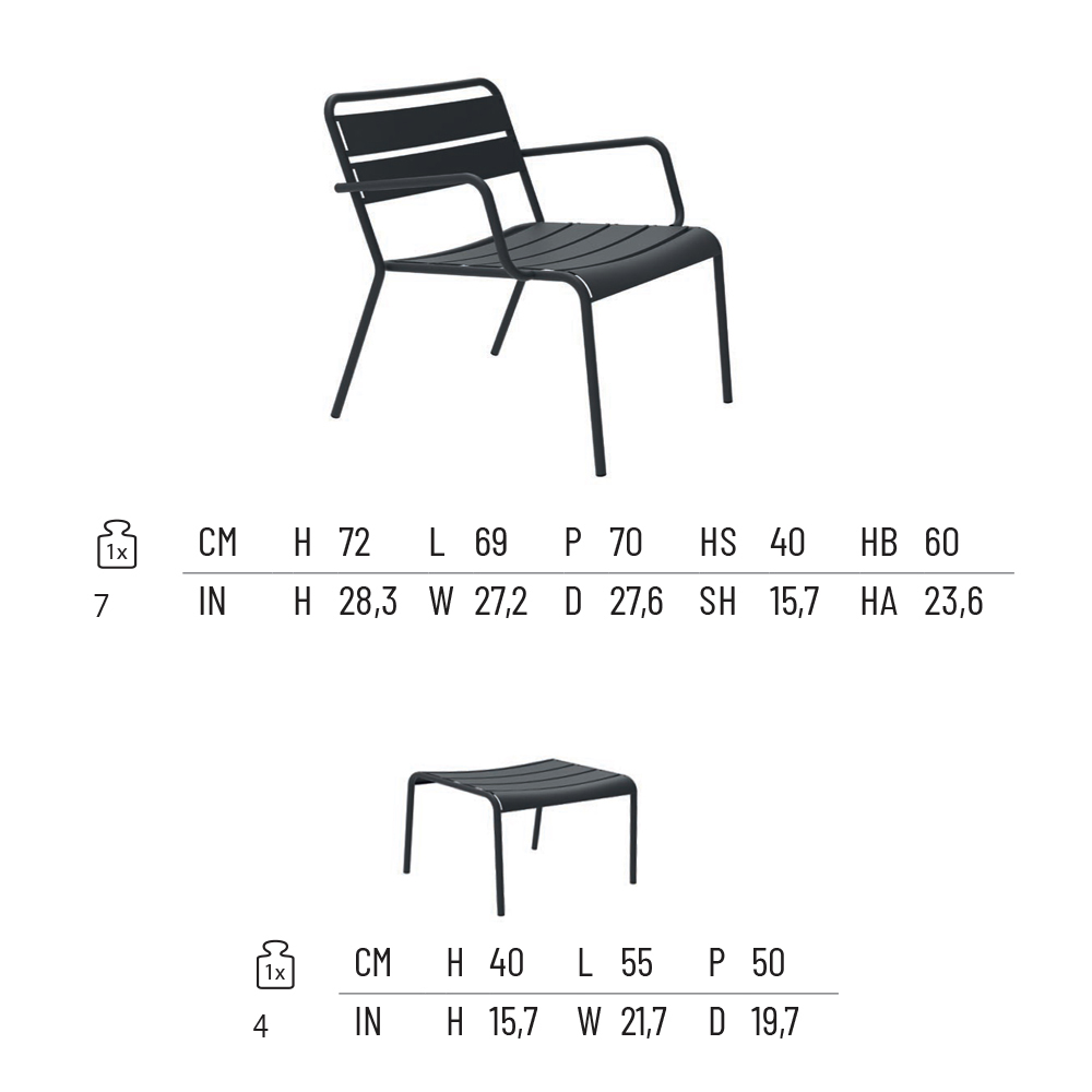 Shënim : shezlongu dhe stoli i këmbëve janë të disponueshme në 7 ngjyra të tjera.