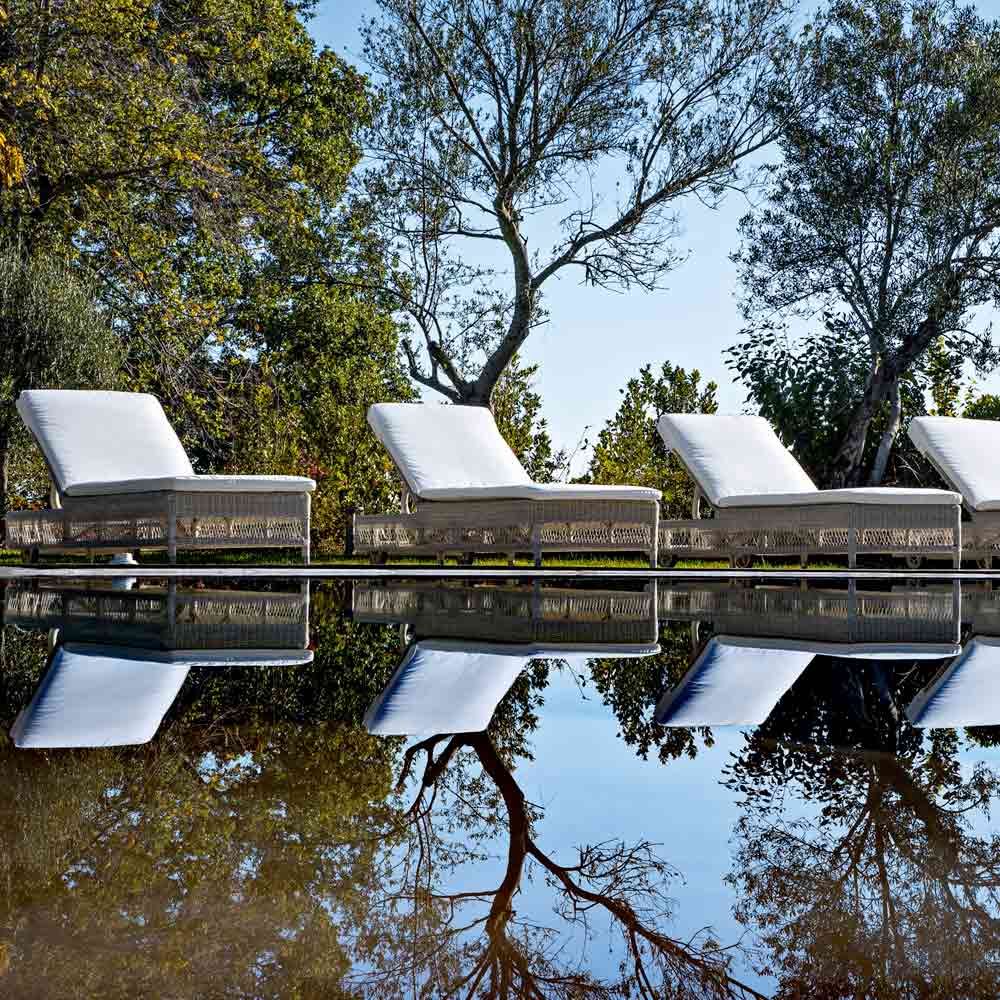Stili i thurjes është i rafinuar dhe delikat dhe së bashku me cilësinë shumë të lartë të materialeve dhe format e tij vendimtare e bëjnë këtë shezlong perfekt për arredimin e ambienteve të brendshme dhe të jashtme, si ambjente private ashtu edhe me kontratë si tarraca, veranda, kopshte, por gjithashtu gjejnë një vendndodhje perfekte buzë pishinës.