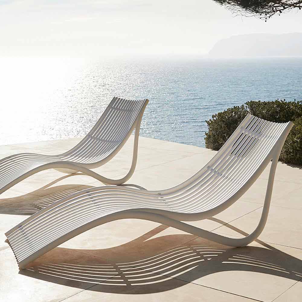 Kjo shezllonpër diellin karakterizohet nga format e saj të valëzuara monoblok që rikujtojnë detin dhe ofrojnë komoditet ergonomik për një pushim avangardë dhe elegant. Dizajni sensual dhe inovativ synon të nxjerrë në pah një mënyrë jetese elegante dhe emocionale.
