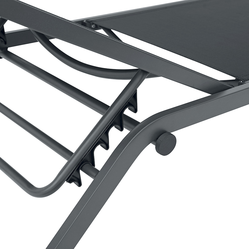 Kjo shezlongë kombinon dizajnin modern, rehatinë dhe qëndrueshmërinë , duke ofruar zgjidhjen ideale për të shijuar në maksimum hapësirat e jashtme. E ndërtuar nga një tub alumini 40 x 20 x 1.6 mm , është njëkohësisht e fortë dhe e lehtë, duke e bërë të lehtë për t’u lëvizur dhe perfekte për përdorim të përditshëm në kopsht, pranë pishinës ose në tarracë.