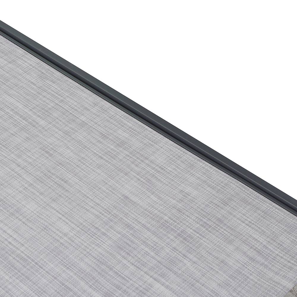 E bërë me një kornizë alumini , shezlongu është i lehtë dhe rezistent ndaj korrozionit , duke siguruar qëndrueshmëri dhe lehtësi në lëvizje. Sipërfaqja e tij prej tekstili është e rehatshme , e frymëmarrjes dhe e lehtë për t'u pastruar, duke ofruar një pushim të rehatshëm edhe në ditët më të nxehta.