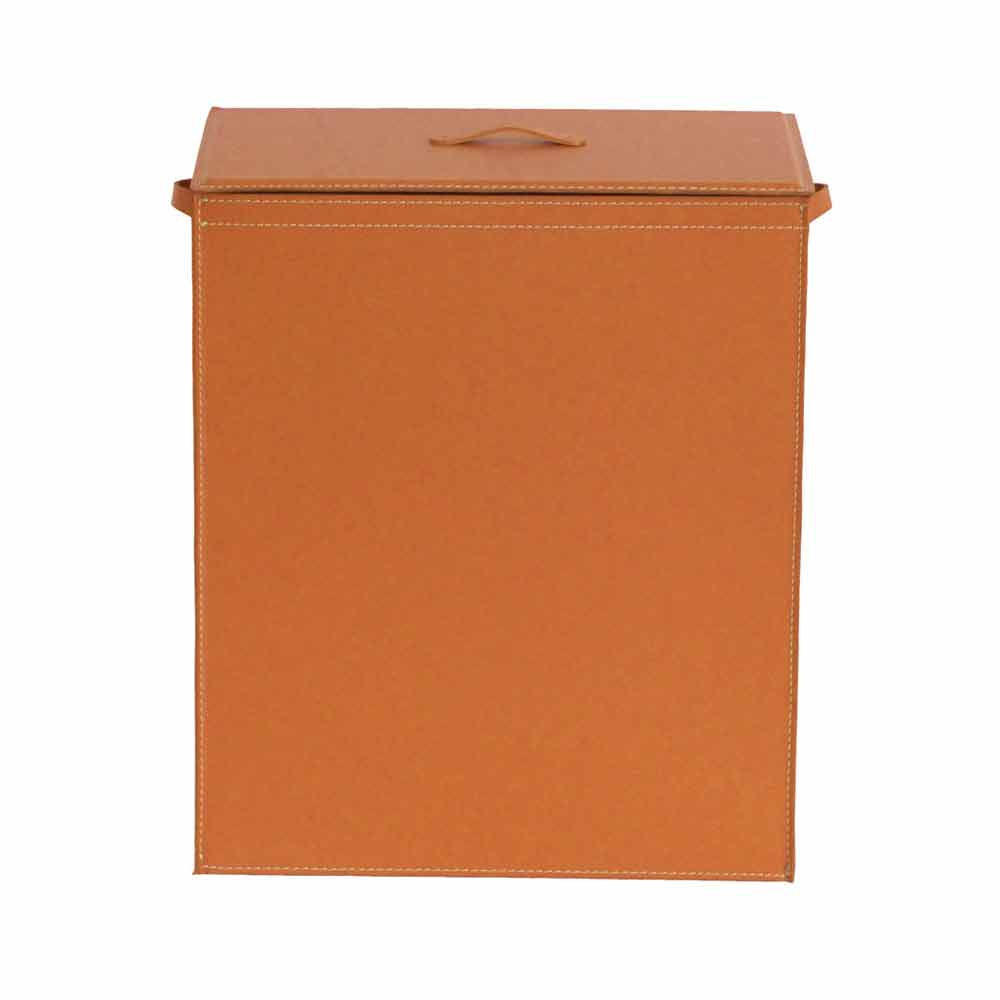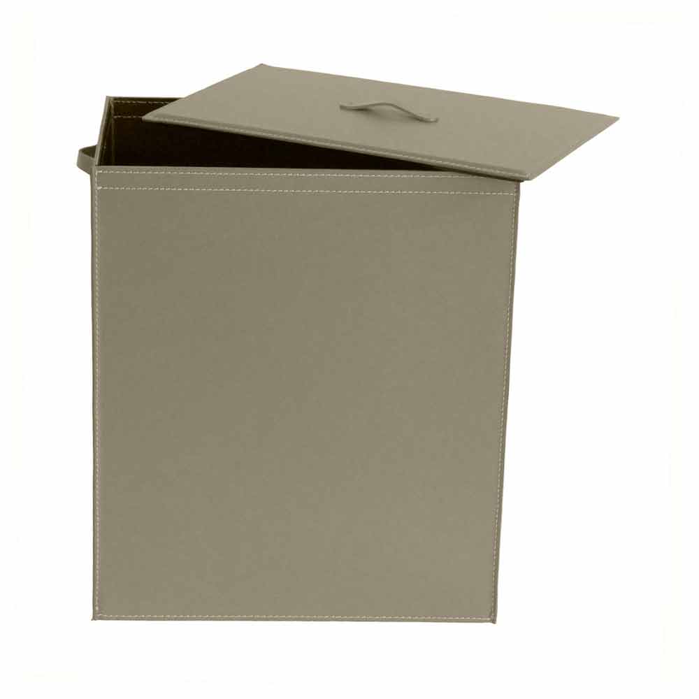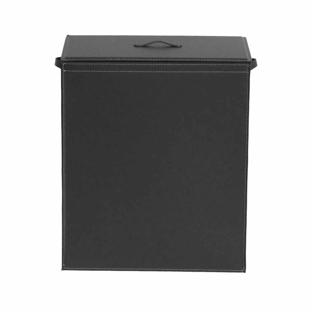 Shporta Lavanderi Drejtkëndore e bërë në lëkurë të rigjeneruar me qese të brendshme të lëvizshme në pambuk të pastër, strukturë në kompensatë të mbuluar me këmbë gome.