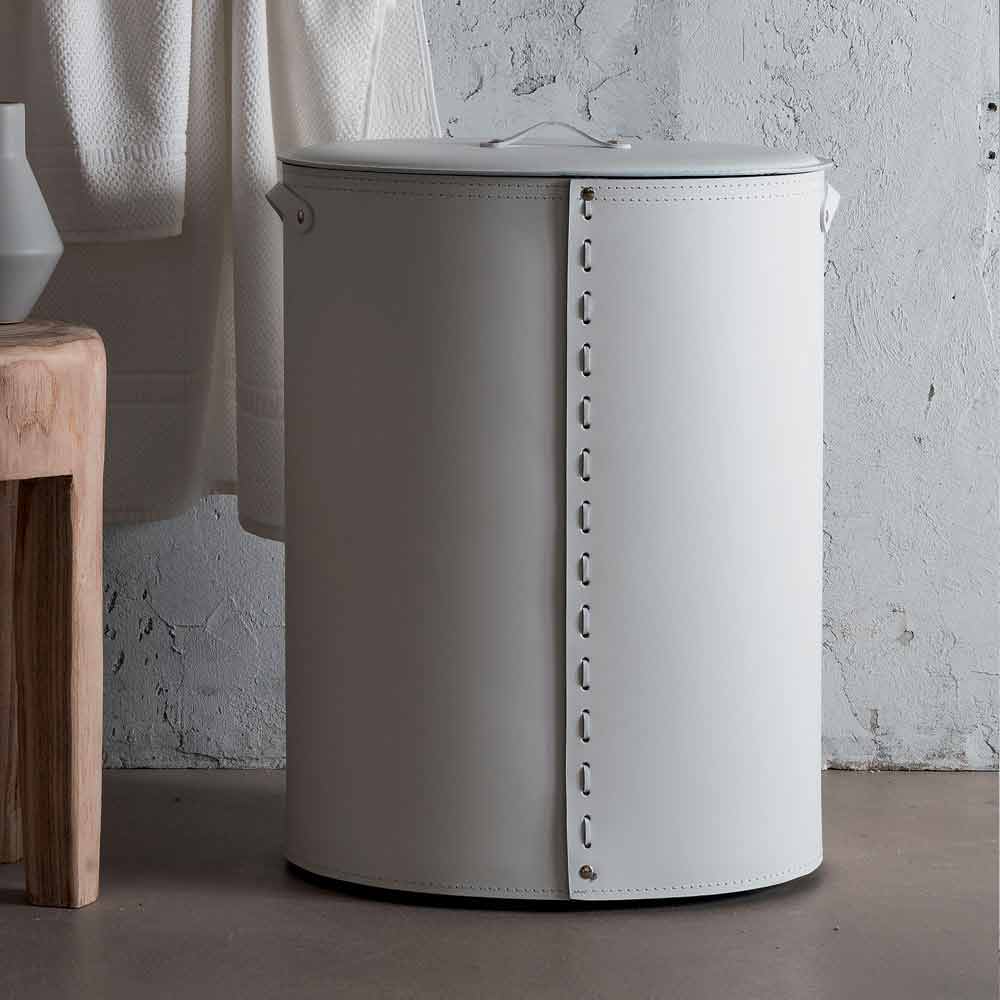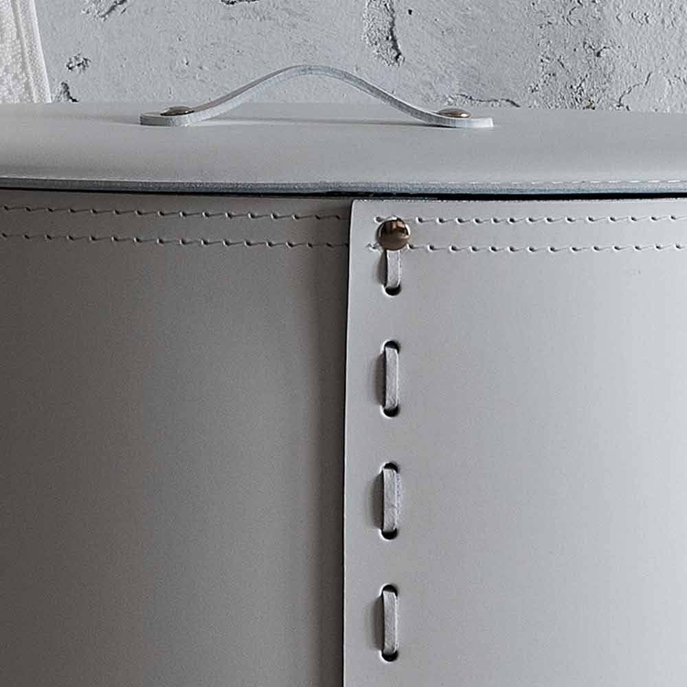 Shporta lavanderi ovale në lëkurën e rigjeneruar Riky të bërë në Itali