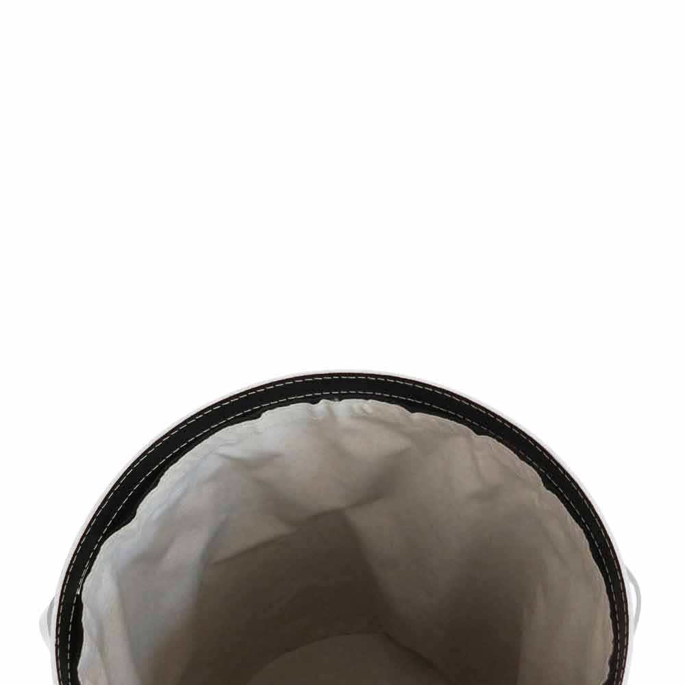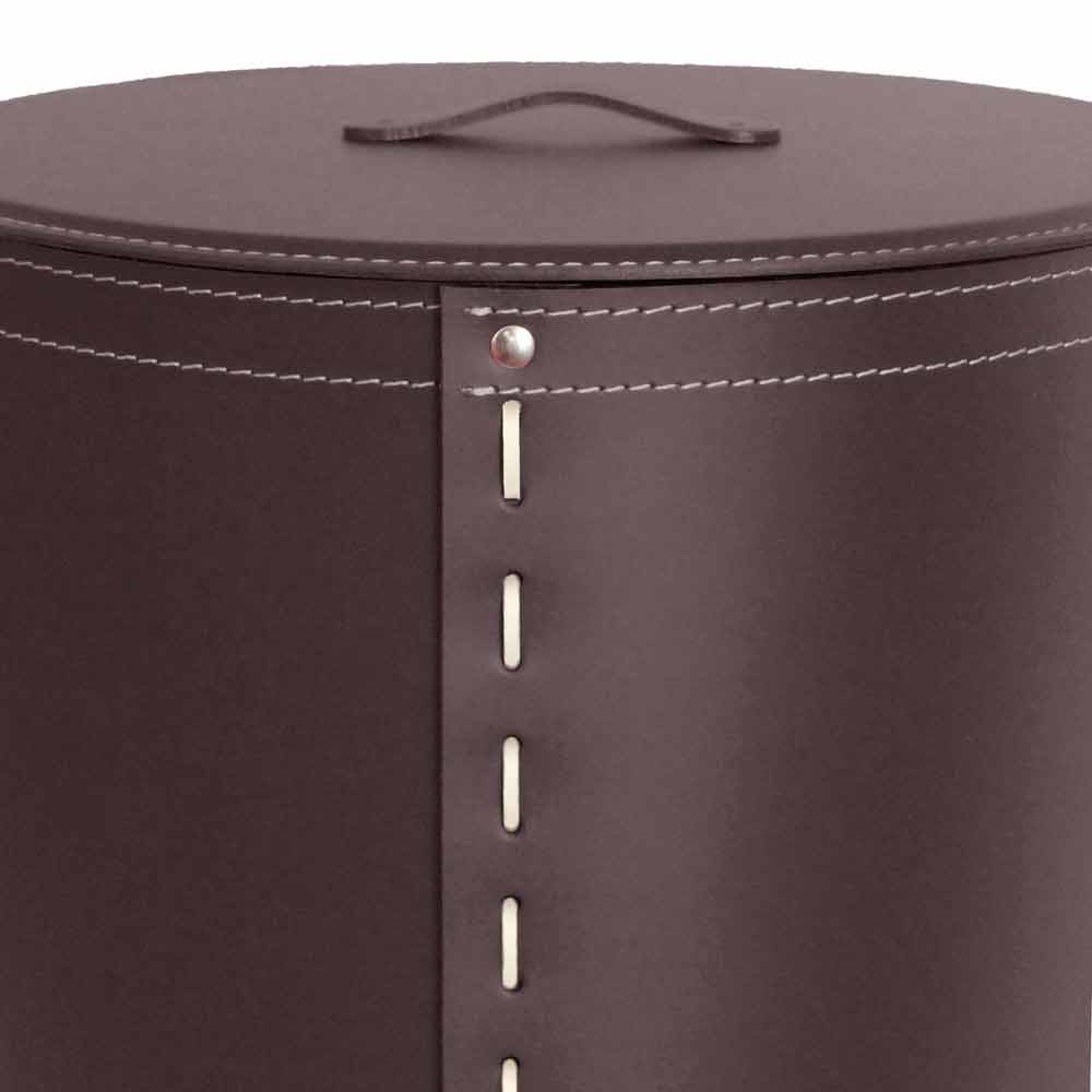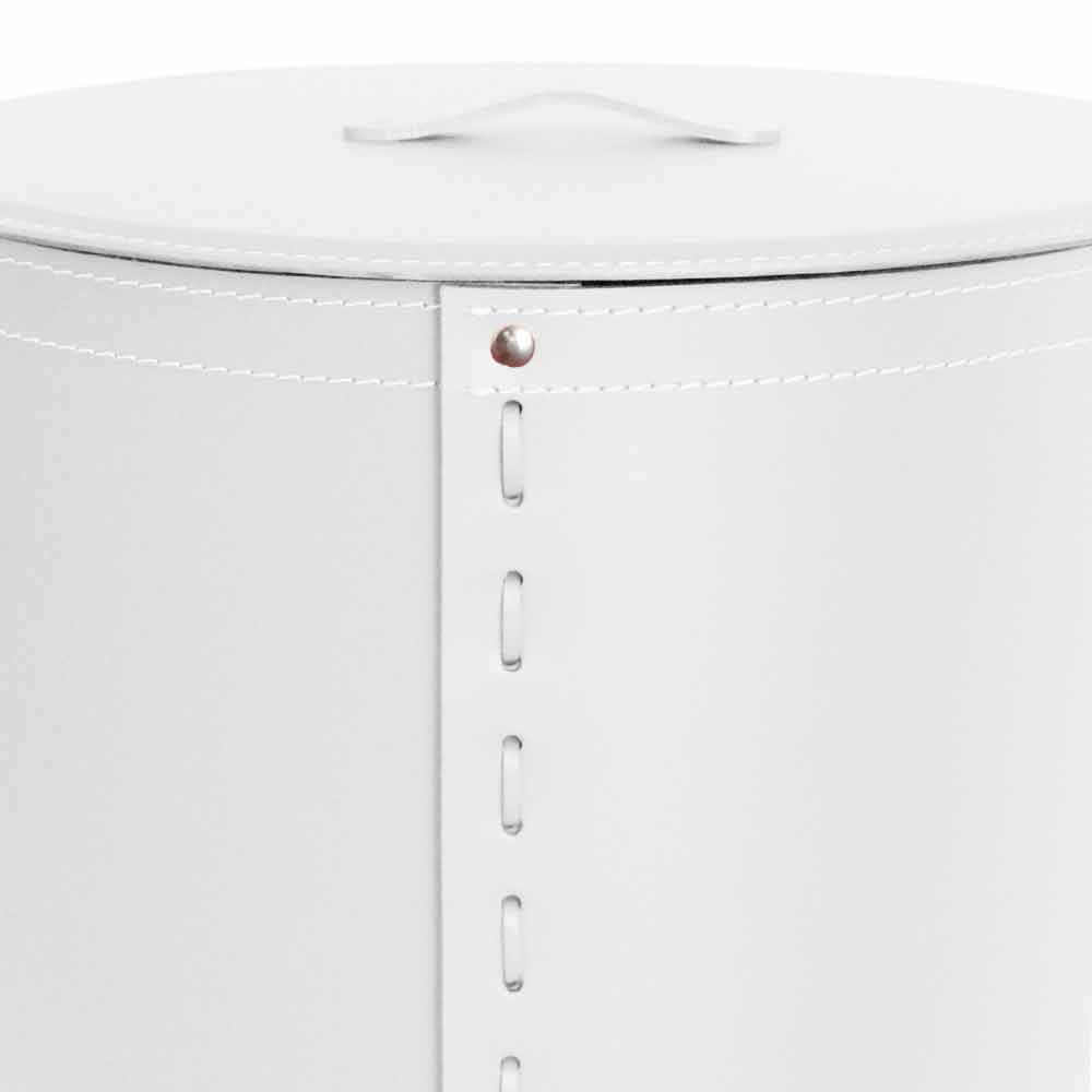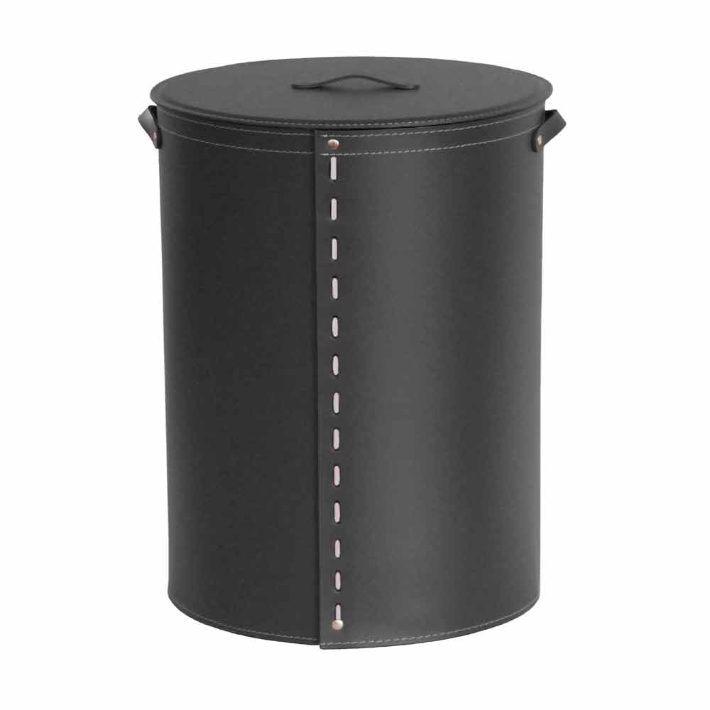 Shporta lavanderi ovale e bërë në lëkurë të rigjeneruar me qese të brendshme të lëvizshme në pambuk të pastër. Struktura në kompensatë e mbuluar prej lëkure me këmbë gome.