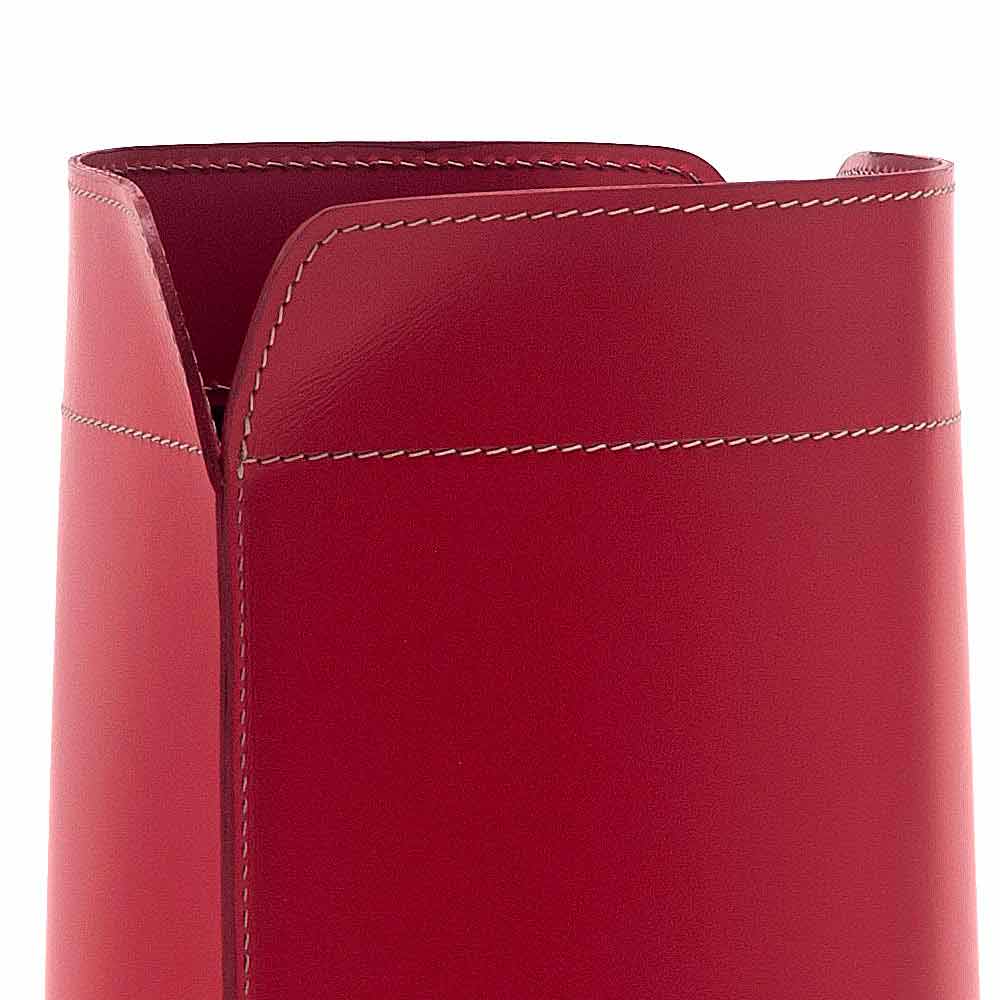 Shporta letre mbeturinash prej lëkure Canistro Canistro është një copë mobilje elegante e përshtatshme për tu vendosur në zyrë, në dhomën e ndenjes ose në dhomën e gjumit. Prakticiteti dhe dizajni bashkohen, duke i dhënë vlerë estetike dhe dekorative një plotësimi thjesht funksional. Madeshtë bërë nga lëkura e çmuar e rigjeneruar, e disponueshme në ngjyra të ndryshme. Fundi është në kompensatë dhe është gjithashtu i mbuluar në lëkurë. Canistro prodhohet tërësisht në Itali nga artizanë të aftë. Format sinuous dhe magjepsja e krijimit artistik paraqesin sintezën perfekte të Made in Italy.
