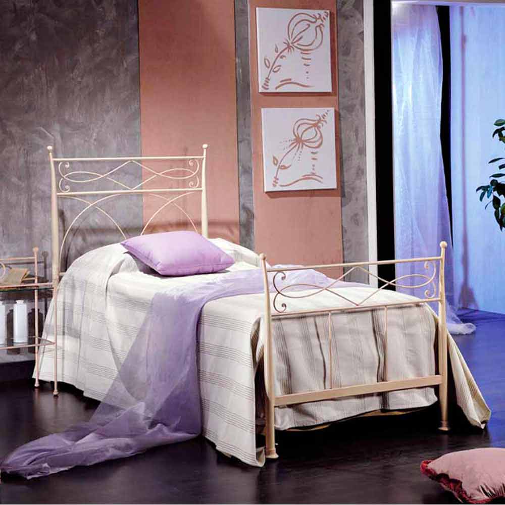 Shtrat i vetëm prej hekuri i punuar Ambra, i punuar me dorë në Itali, dizajn klasik, i përshtatshëm për një bazë shtrati 85x190 cm