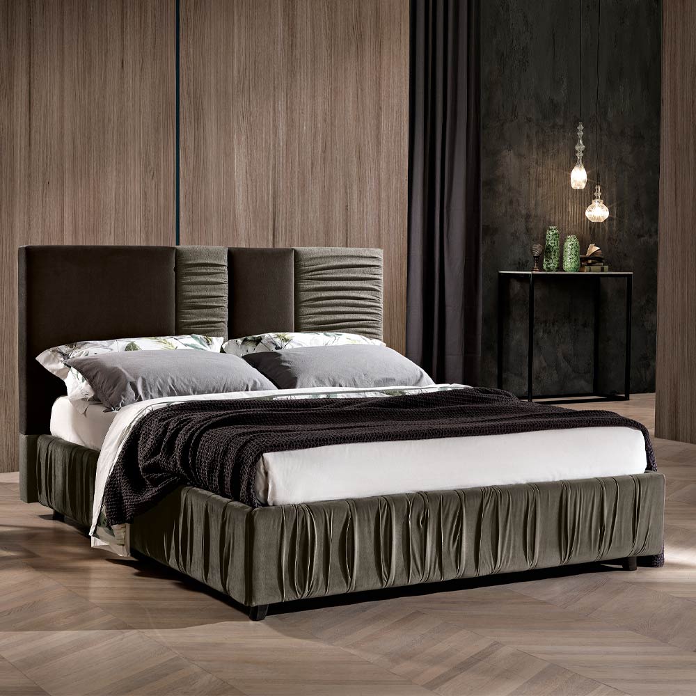 Në versionet e vullkanit dhe elefantit, komplementi i dizajnit modern tregon bukurinë e pëlhurës me palosje që aplikohet edhe në kornizën e krevatit.