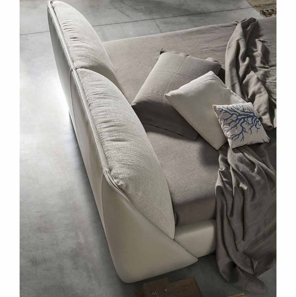 Krevat dopio i prodhuar në Itali me kornizë të brendshme nga kompensatë plepi i mbuluar me poliuretani dhe astar me fibër poliesteri, krevati me gomë poliuretani dhe dacron i mbuluar me pëlhurë , mbulesë e jashtme e kornizës së krevatit (H. 30 cm) prej lëkure ose eko-lëkure . Një shtrat me linja të buta dhe mikpritëse që siguron pushim cilësor duke i dhënë një prekje të sofistikuar dhe elegante zonës tuaj të gjumit. Dizajni i tij përfaqëson një zgjidhje ideale për ata që duan të kombinojnë stilin dhe elegancën me aspektin themelor funksional dhe praktik për një rezultat ekskluziv me një personalitet të fortë modern . Loja e mrekullueshme e kontrasteve e dhënë nga kombinimi i dy pëlhurave të ndryshme pasuron dhe nënvizon estetikën, duke e bërë atë protagoniste të vërtetë të dhomës dhe duke ofruar një ndjesi të këndshme besueshmërie dhe mirëseardhjeje.