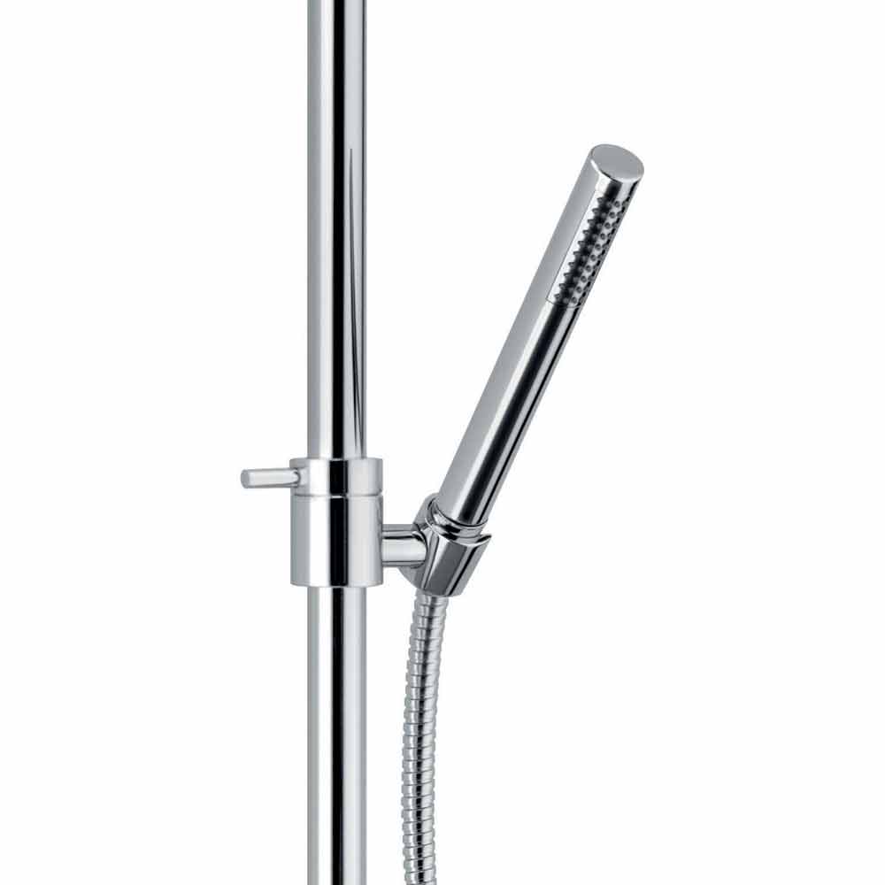 funksionalitetin e tij. Mbështetja rrëshqitëse ju lejon të personalizoni lartësinë e dushit e cila është e lidhur me zorrën praktike 150 cm fleksibël të projektuar dhe studiuar për përdorim të thjeshtë dhe të rehatshëm. Dizajni i saj karakterizohet nga