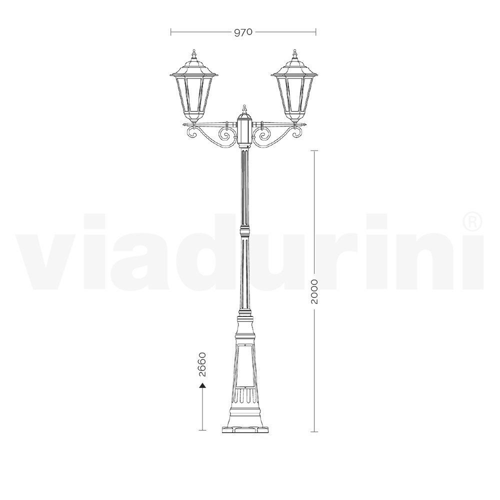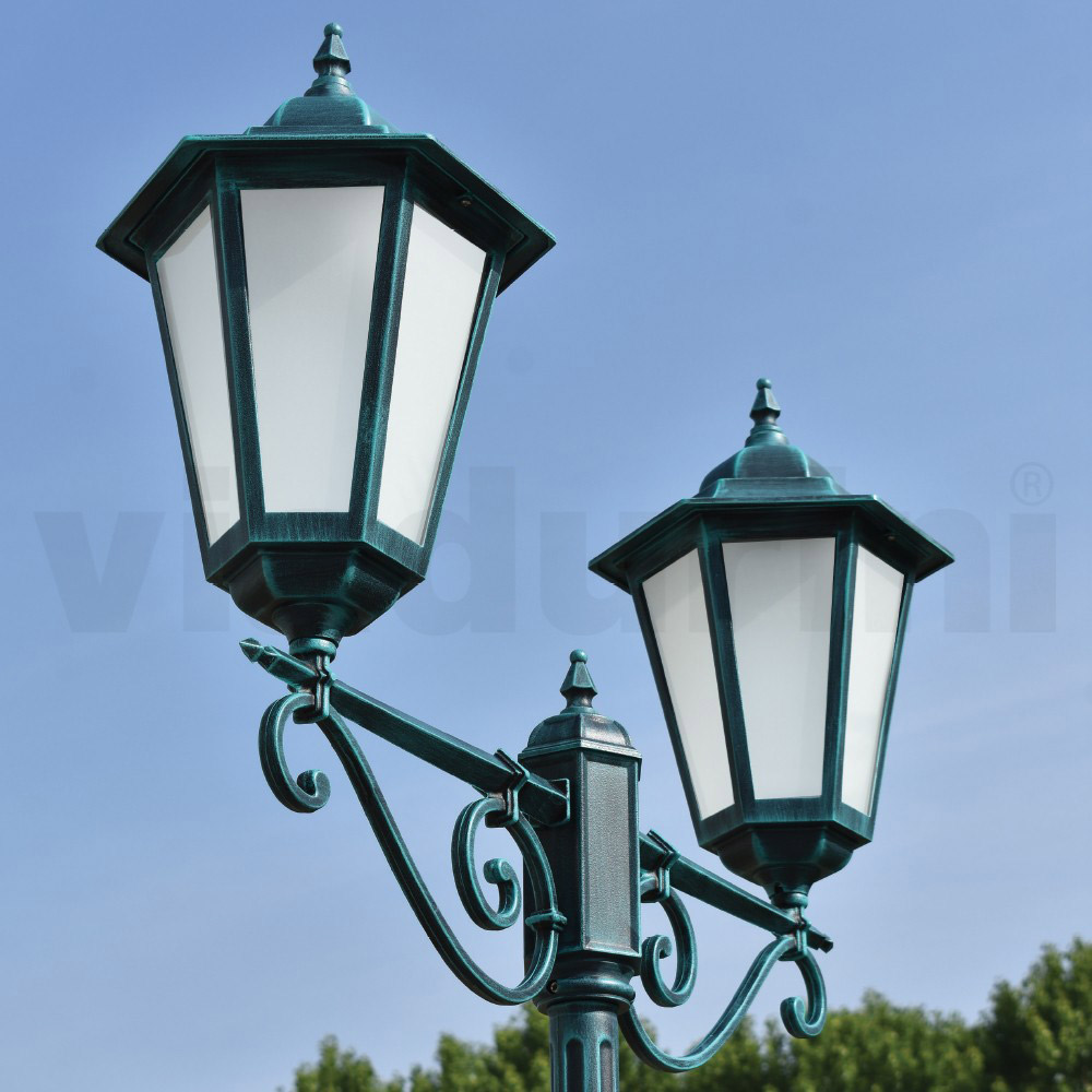 Llambë rruge alumini me 2 dritë stil vintage me shpërndarës xhami Prodhuar në Itali.