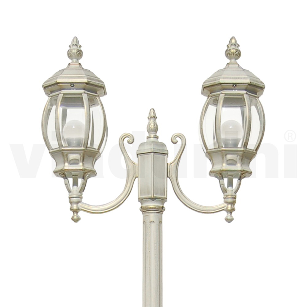 Shtyllë llambash 2 drita kopshti vintage në alumin dhe polikarbonat Prodhuar në Itali.