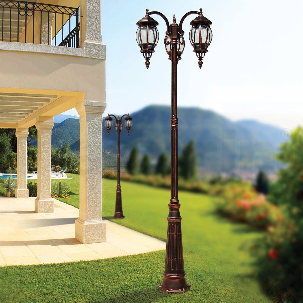 Llambë rruge alumini 3-drite stil vintage me shpërndarës polikarbonat Prodhuar në Itali.