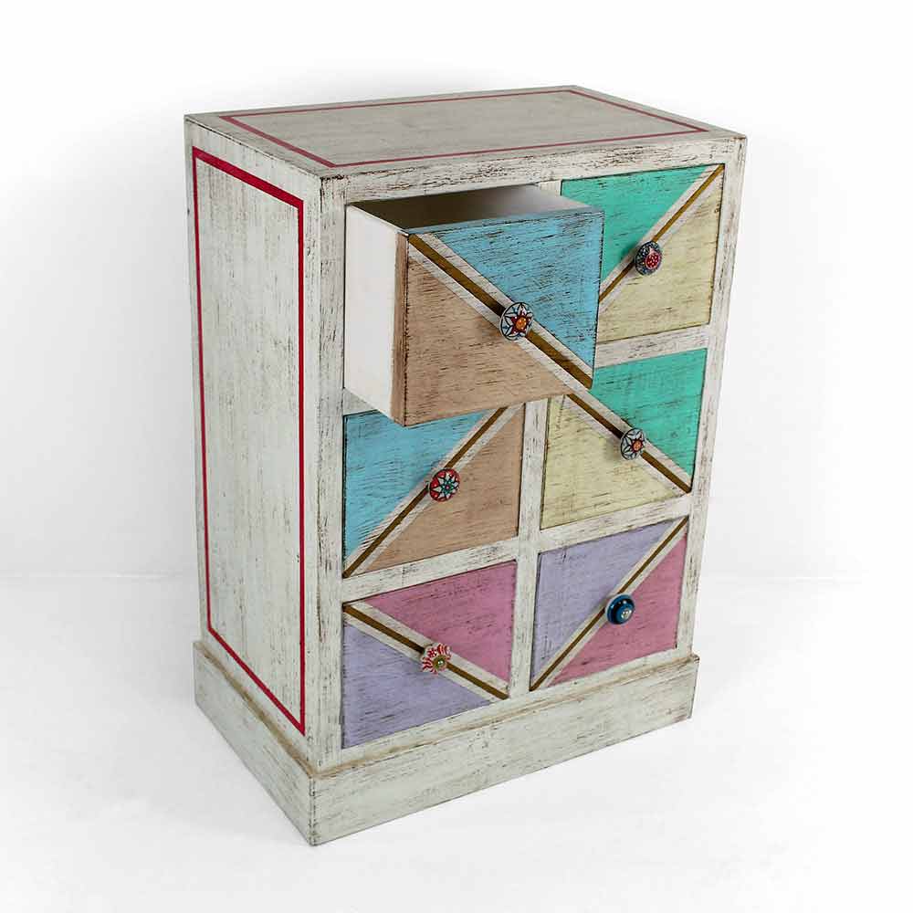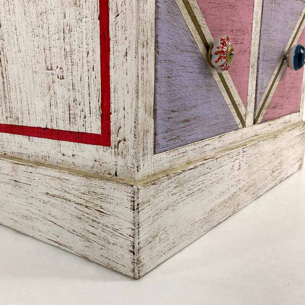 Sirtarë prej druri të punuar me dorë me sirtarë të pikturuar me model gjeometrik, gjobë Artikulli Made in Italy.