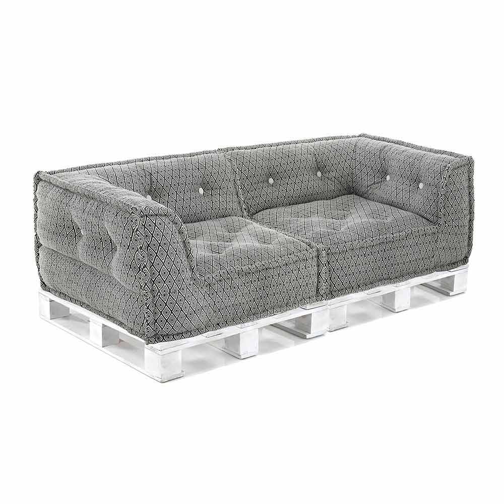 Sofa etnike me dy vendesh të mbushur në pëlhurë lara-lara dhe druri - fibër