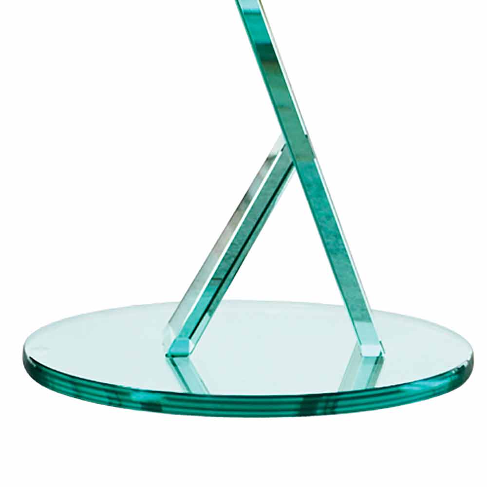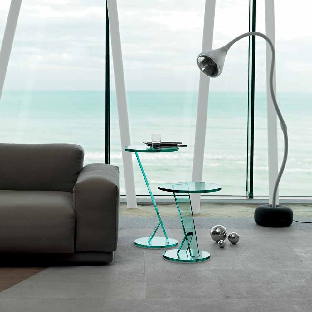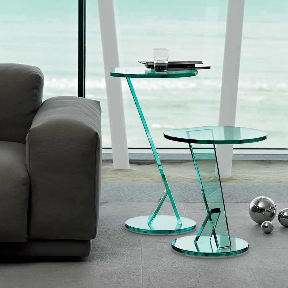 Kjo tryezë anësore e divanit për dhomën e ndenjes karakterizohet nga dizajni i saj origjinal dhe me shumë qëllime i bërë tërësisht nga xhami ekstra i pastër.