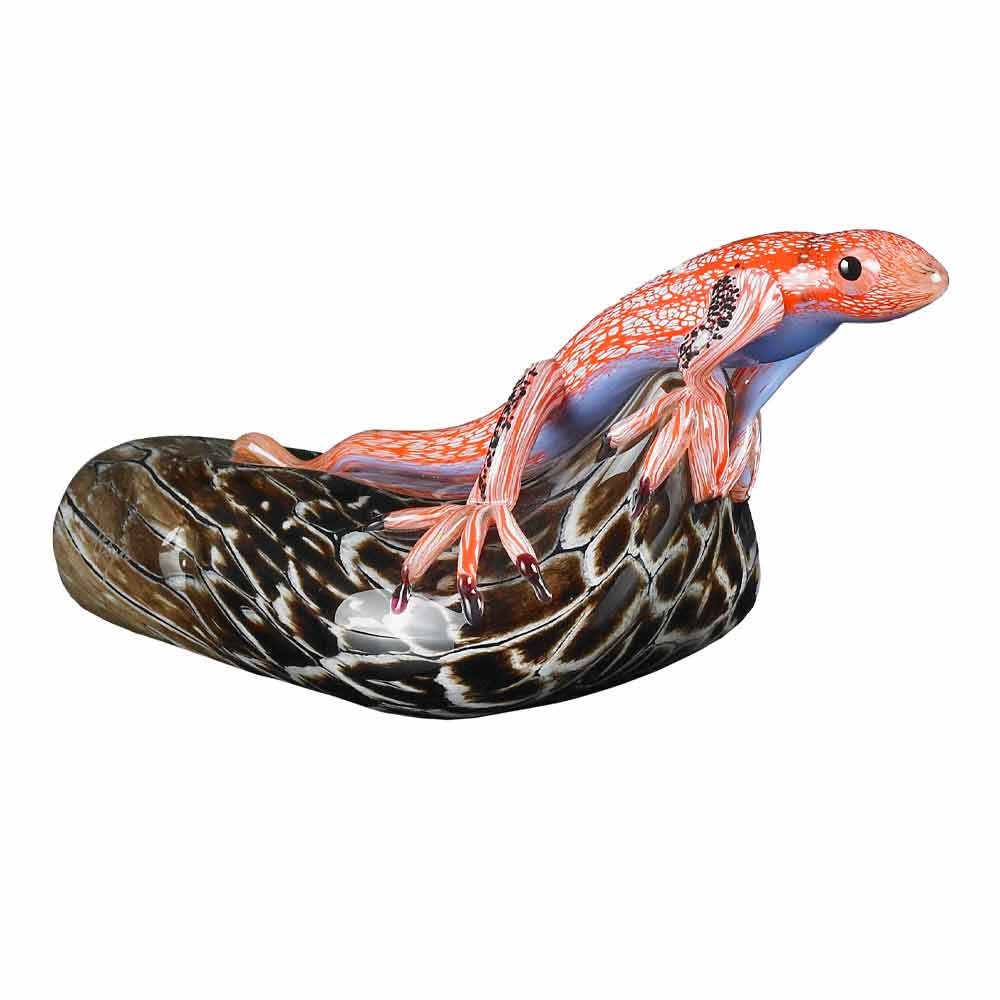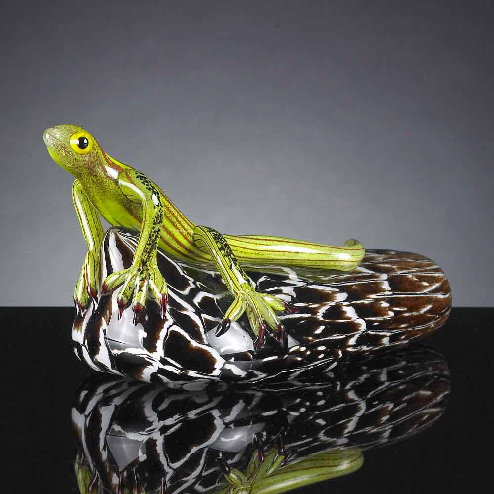 Ornament në formën e hardhucës në gur në xham me ngjyrë Prodhuar në Itali, mirë.