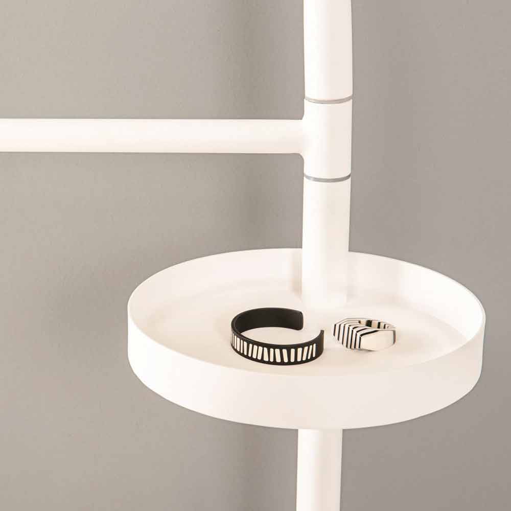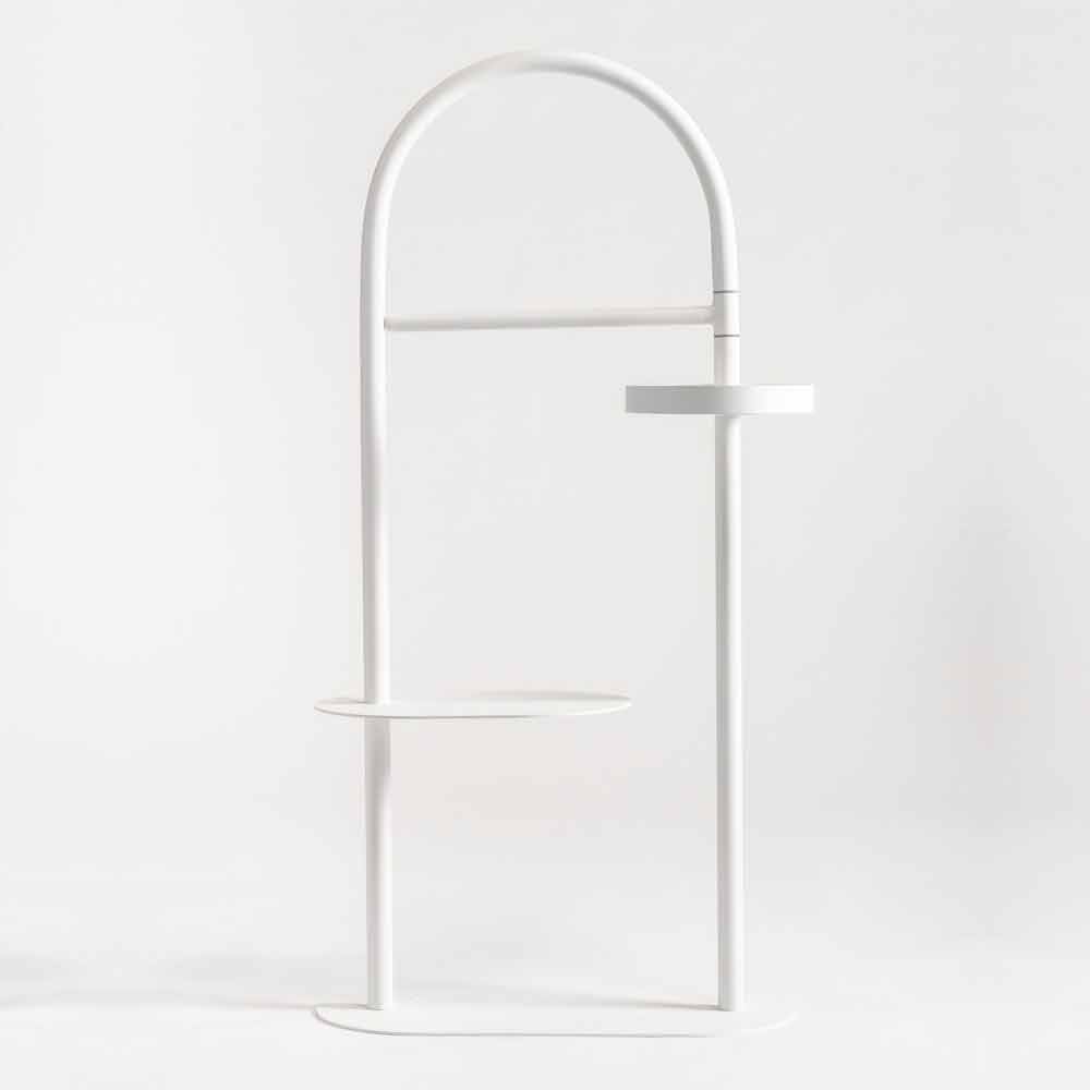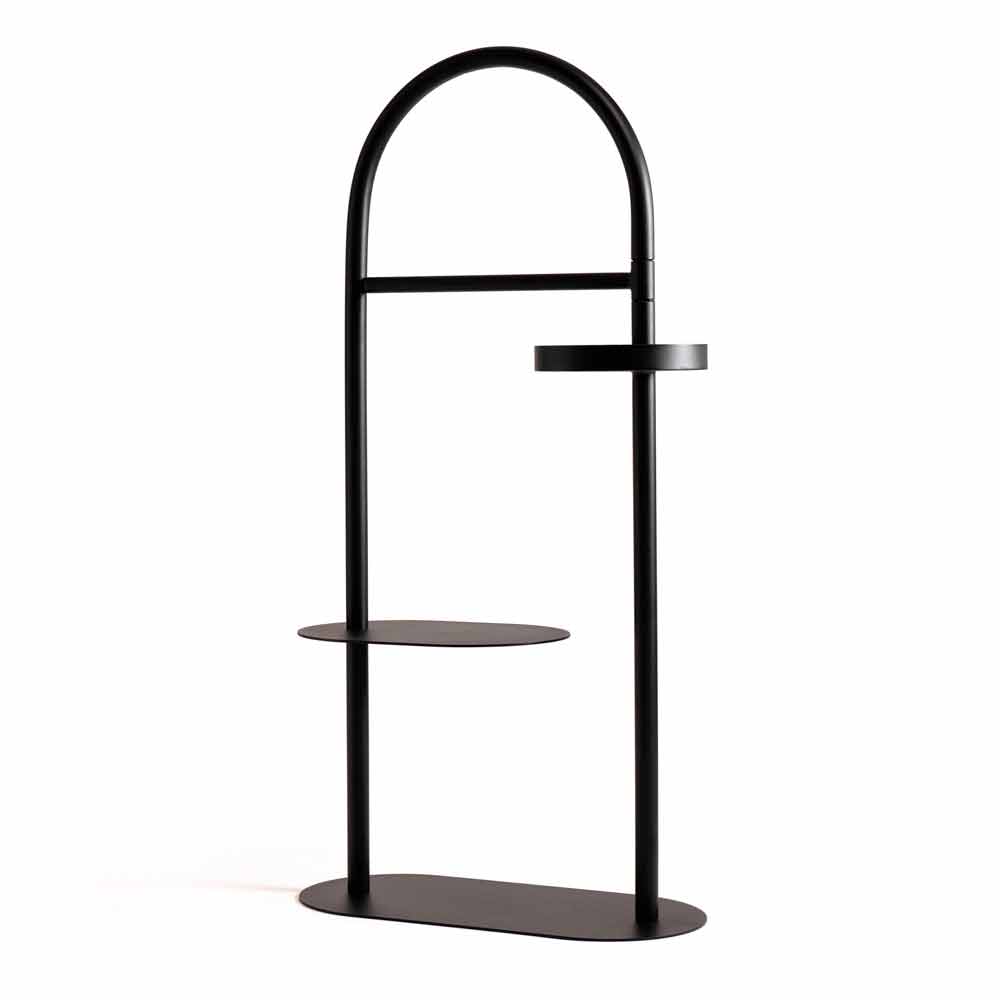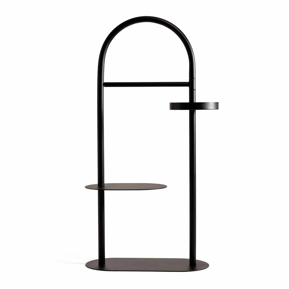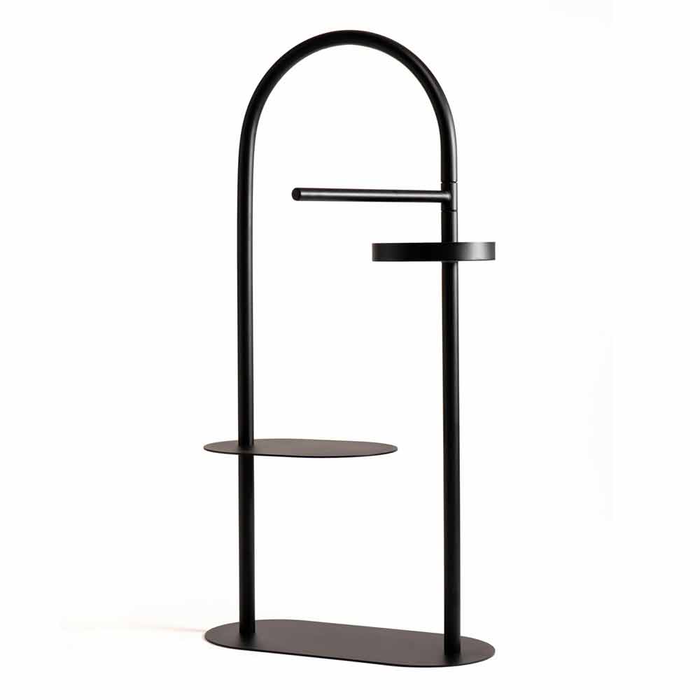 Stenda shërbëtor është një element që është thelbësor për organizimin e rrobave në dhomën tuaj të gjumit ose në dollapin tuaj dhe për këtë arsye është e rëndësishme të zgjidhni atë të duhur duke marrë parasysh nevojat tuaja dhe orenditë përreth. Ky produkt është prodhuar plotësisht në Itali dhe karakterizohet nga një dizajn minimal por me ndikim falë formës së harkut gjysmërrethor që bëhet një krah kthyes praktik dhe funksional. Struktura e saj është bërë prej çeliku të pikturuar RAL dhe ka dy rafte praktike ideale për vendosjen e objekteve të tilla si gota, çelësa ose ndonjë pajisje shtesë që dëshironi të keni në dorë.