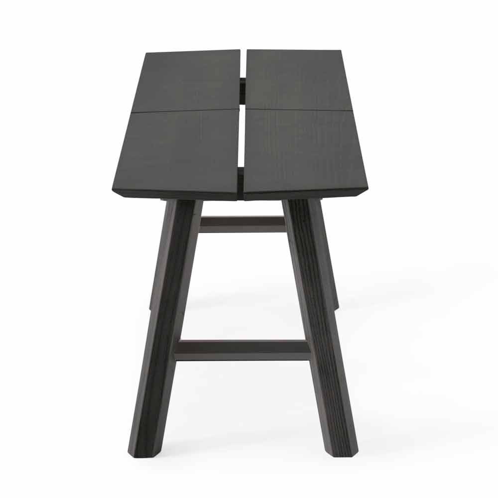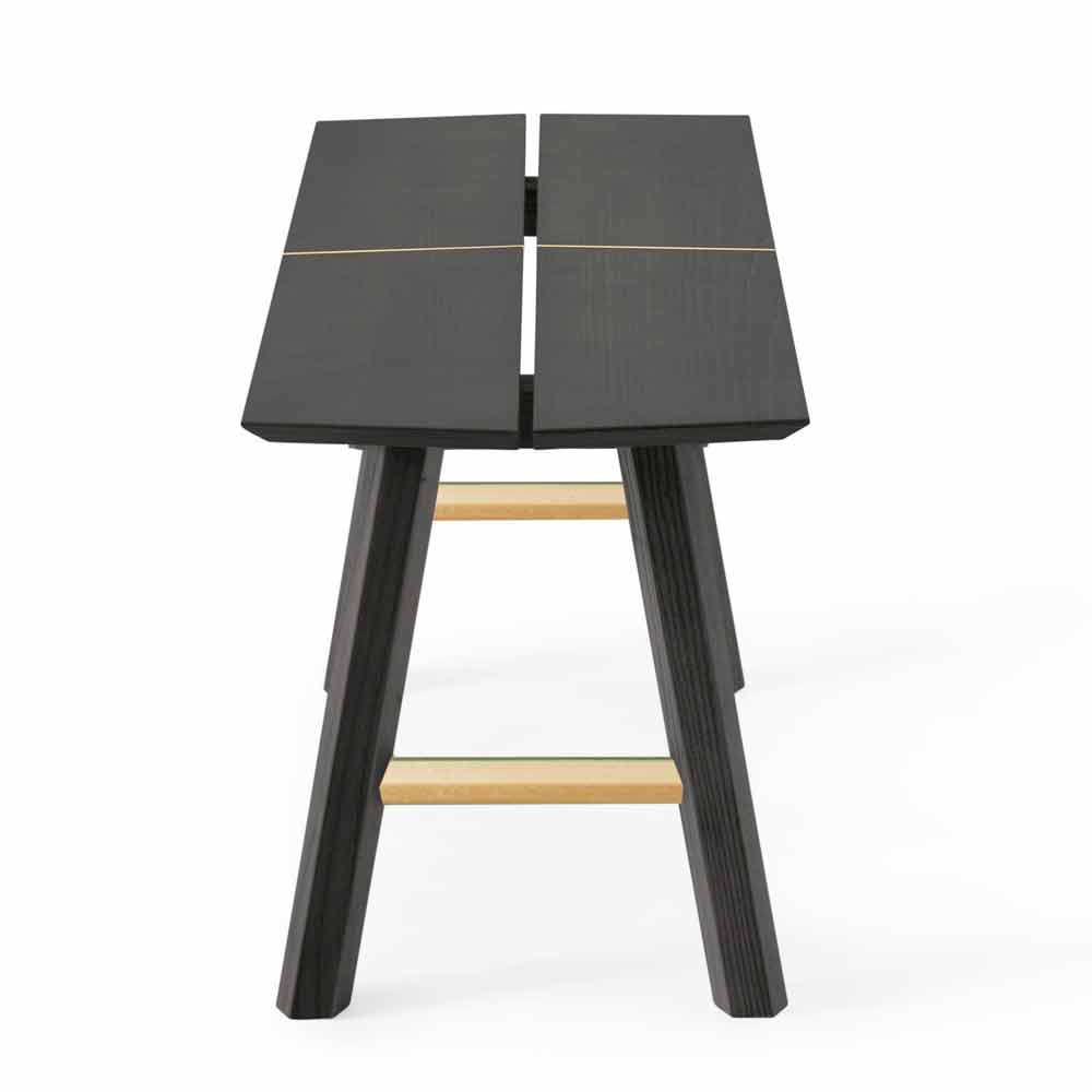 Stol modern në dru hiri të fortë dhe rimeso me detaje të llakuara.