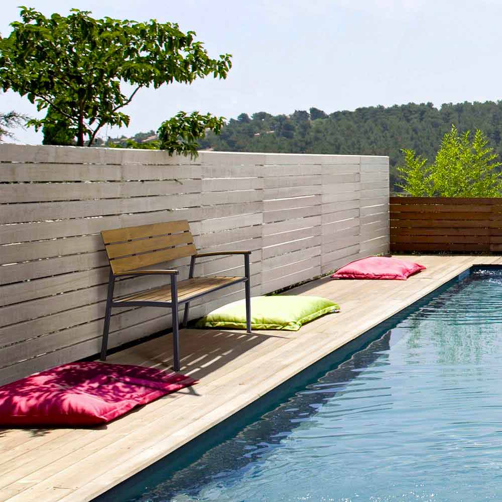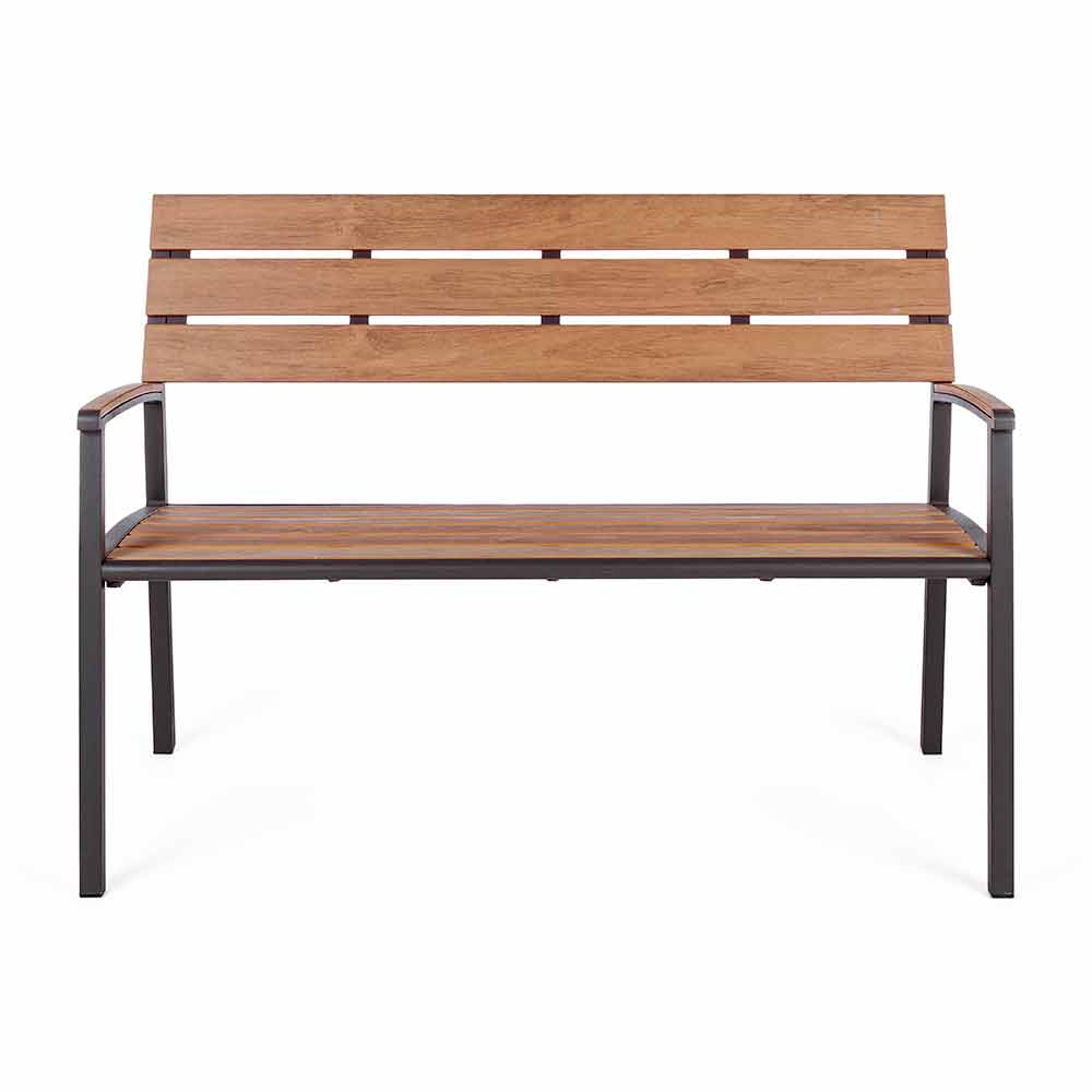Struktura në alumin , e veshur me pluhur (poliester), sedilje, shpinë dhe armrests në poliwood (material i përbërë me një pamje të ngjashme me drurin) 90% polisterol 10% sbs ngjyrë tik, vida në çelik të galvanizuar. Për tu mbledhur .