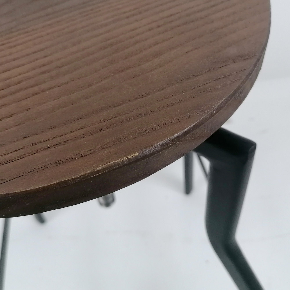 Ka një kornizë metalike industriale të lyer me të zezë dhe një ndenjëse industriale prej arre, të rregullueshme në lartësi deri në një lartësi maksimale prej 76 cm. Siguroni stil dhe rehati maksimale me këtë stol.