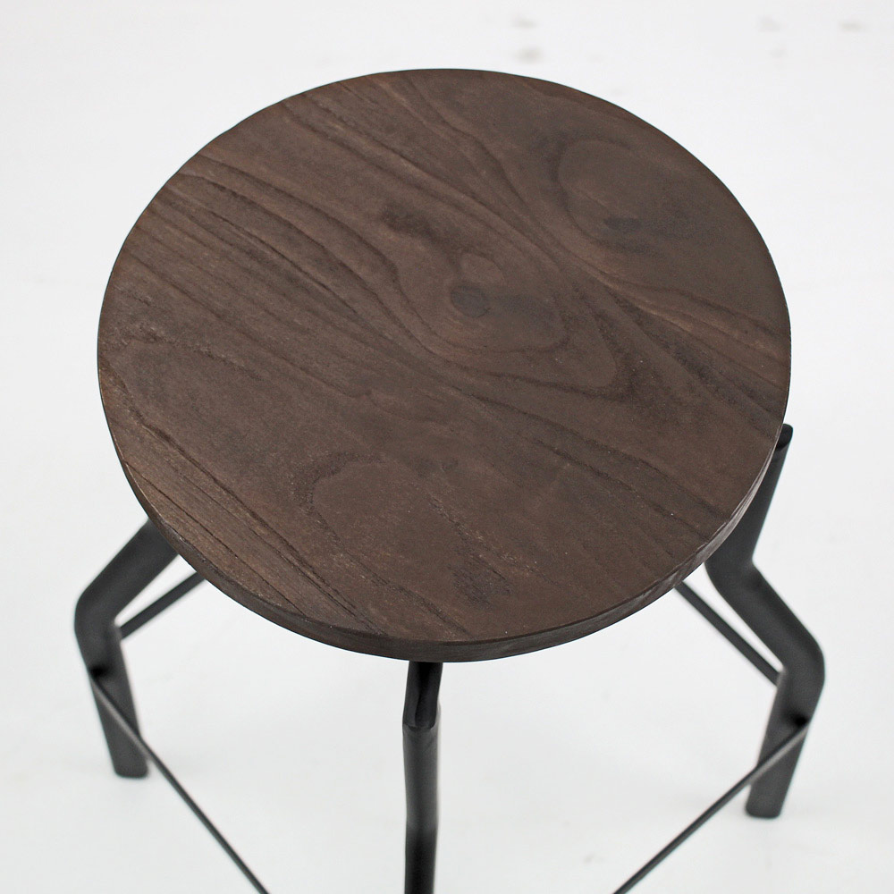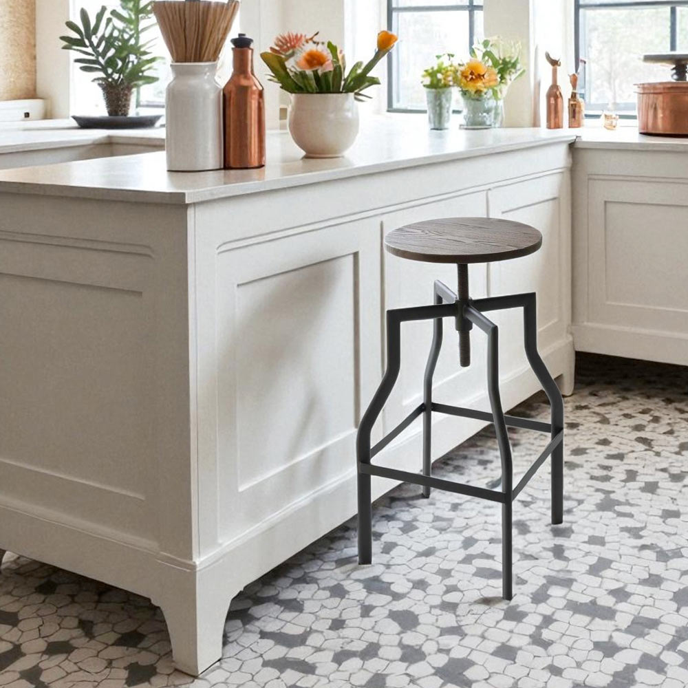 Ka një kornizë metalike industriale të lyer me të zezë dhe një ndenjëse industriale prej arre, të rregullueshme në lartësi deri në një lartësi maksimale prej 76 cm. Siguroni stil dhe rehati maksimale me këtë stol.
