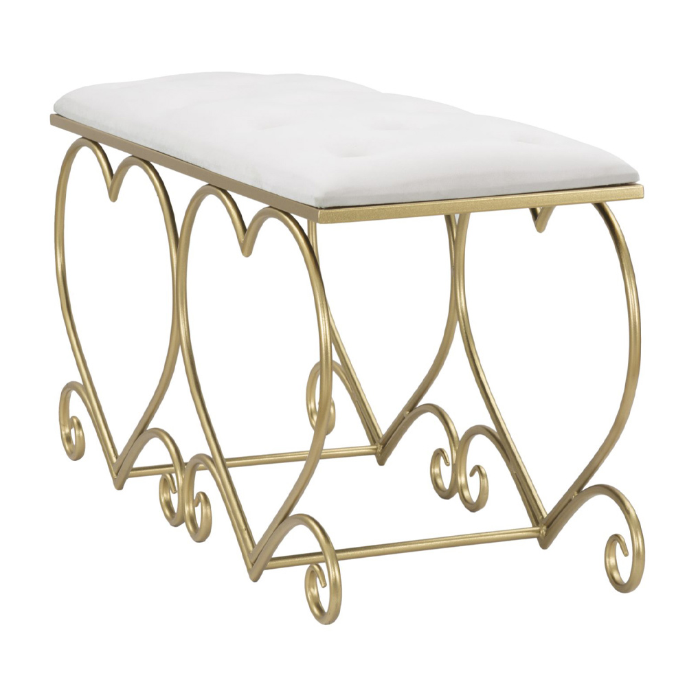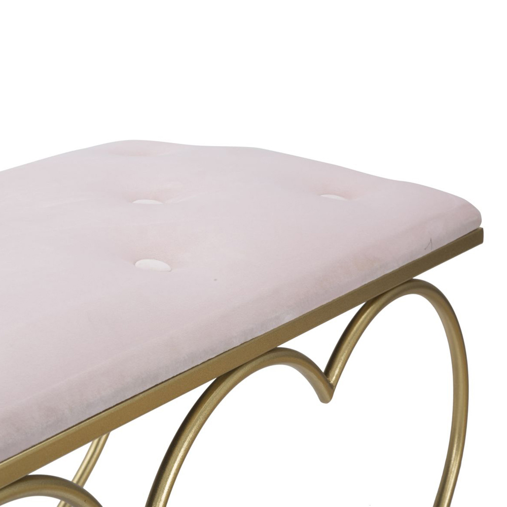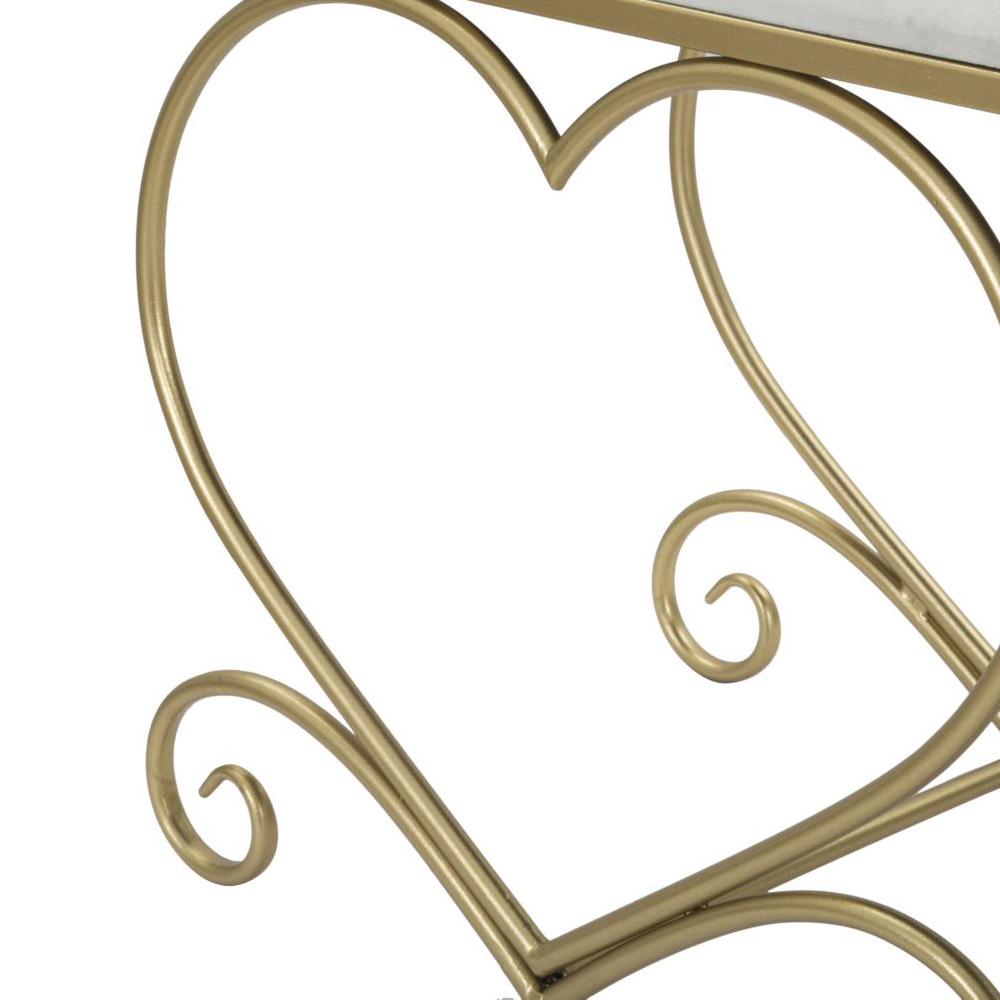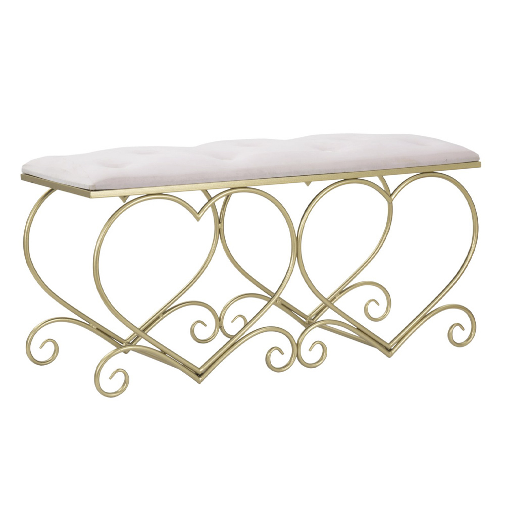 Stol modern në hekur me përfundim të artë me sedilje të mbushur me sfungjer dhe të mbuluar me pëlhurë . Një mobilje me një shpirt ëndërrimtar , e karakterizuar nga forma e veçantë e zemrës e bazës që pasuron estetikën duke e bërë atë unike dhe elegante . Kombinimi i mrekullueshëm i ngjyrave të zgjedhura kompleton pamjen përfundimtare duke e bërë këtë stol një element ideal dekorativ për ata që kërkojnë një stil romantik dhe që duan të mobilojnë hapësirat e tyre shtëpiake me objekte me një personalitet të fortë të rafinuar .