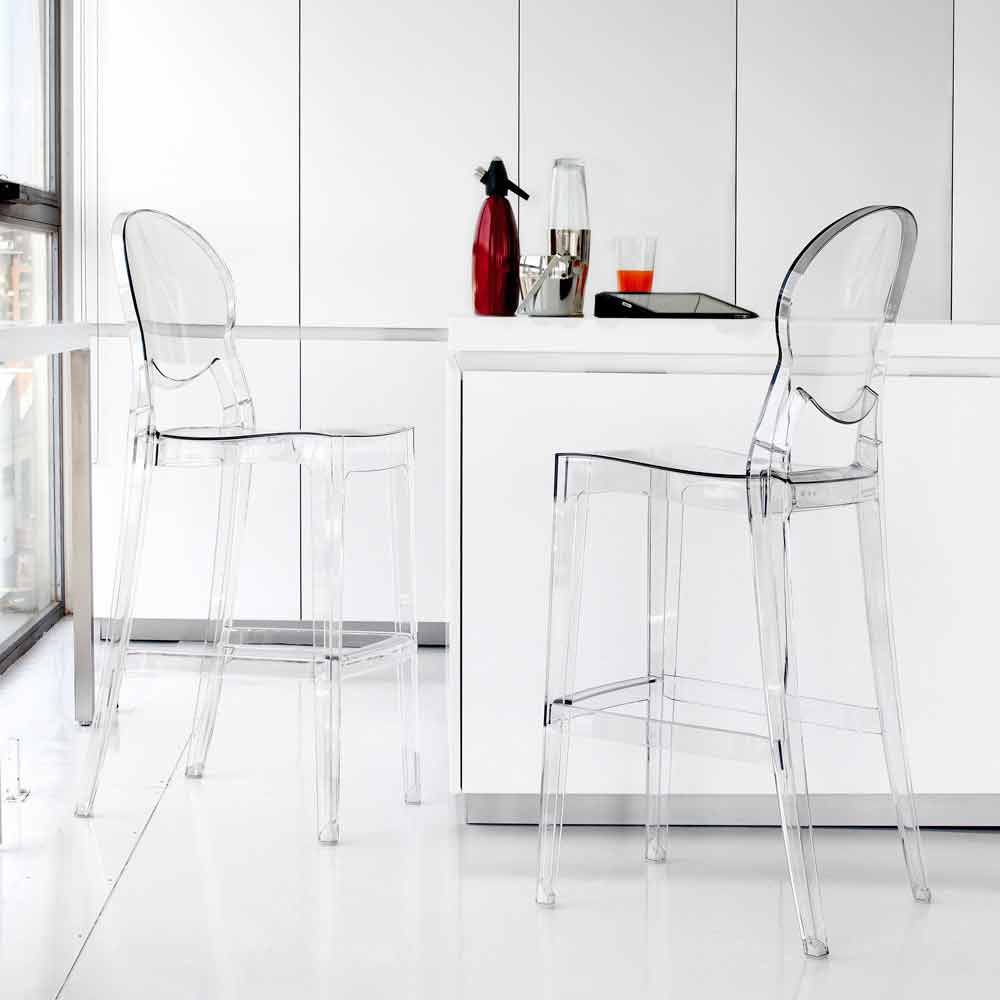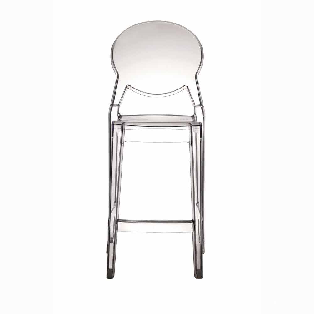 Stool Bosa, i bërë nga polikarbonat i qartë, dizajn modern.