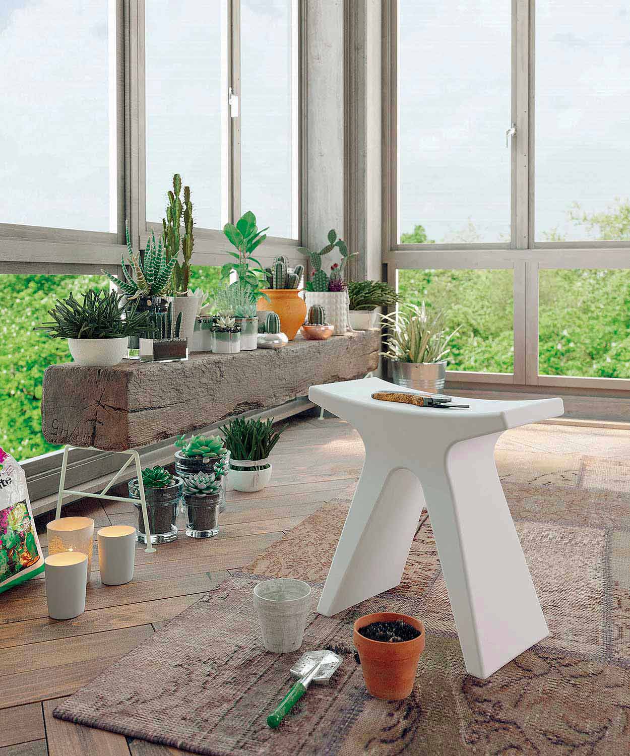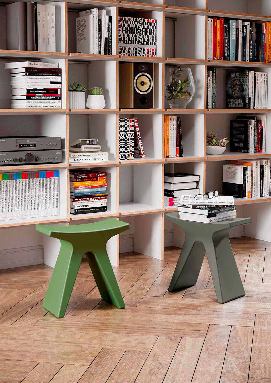 Stool i ulët në natyrë me një dizajn modern të bërë nga polipropileni, Made in Italy