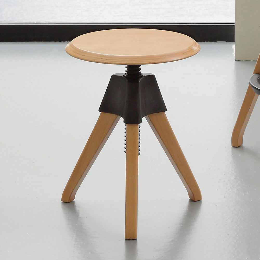 Stool modern i bërë nga druri i ahut i ngurtë me detaje të zeza polipropileni.