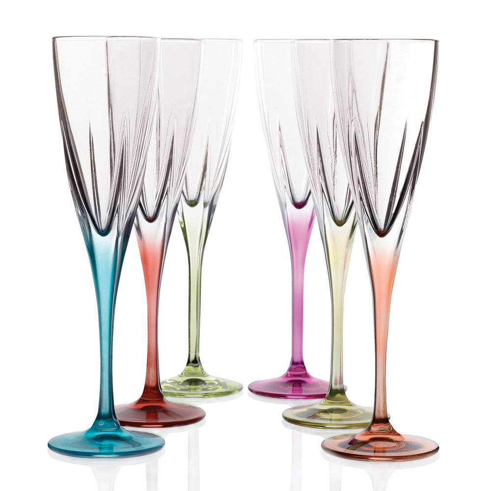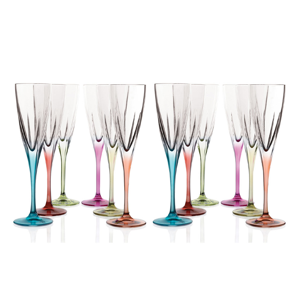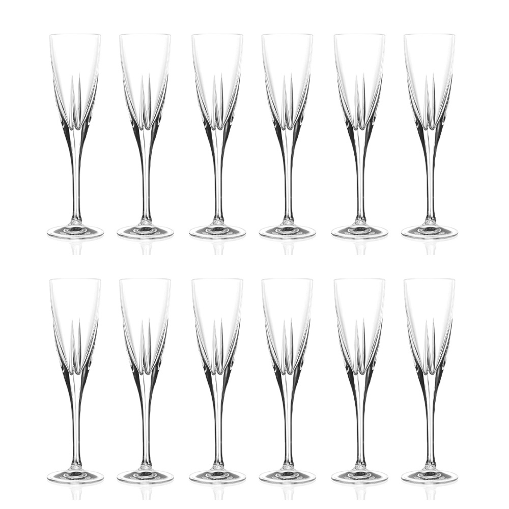 Set i syzeve të flautit në eko kristal transparent ose me ngjyrë, 12 copë të prodhuara në Itali.