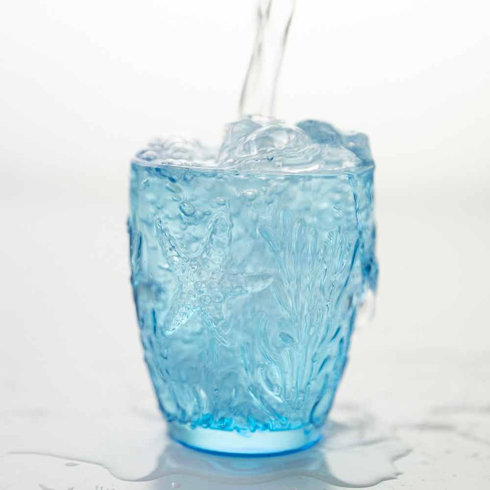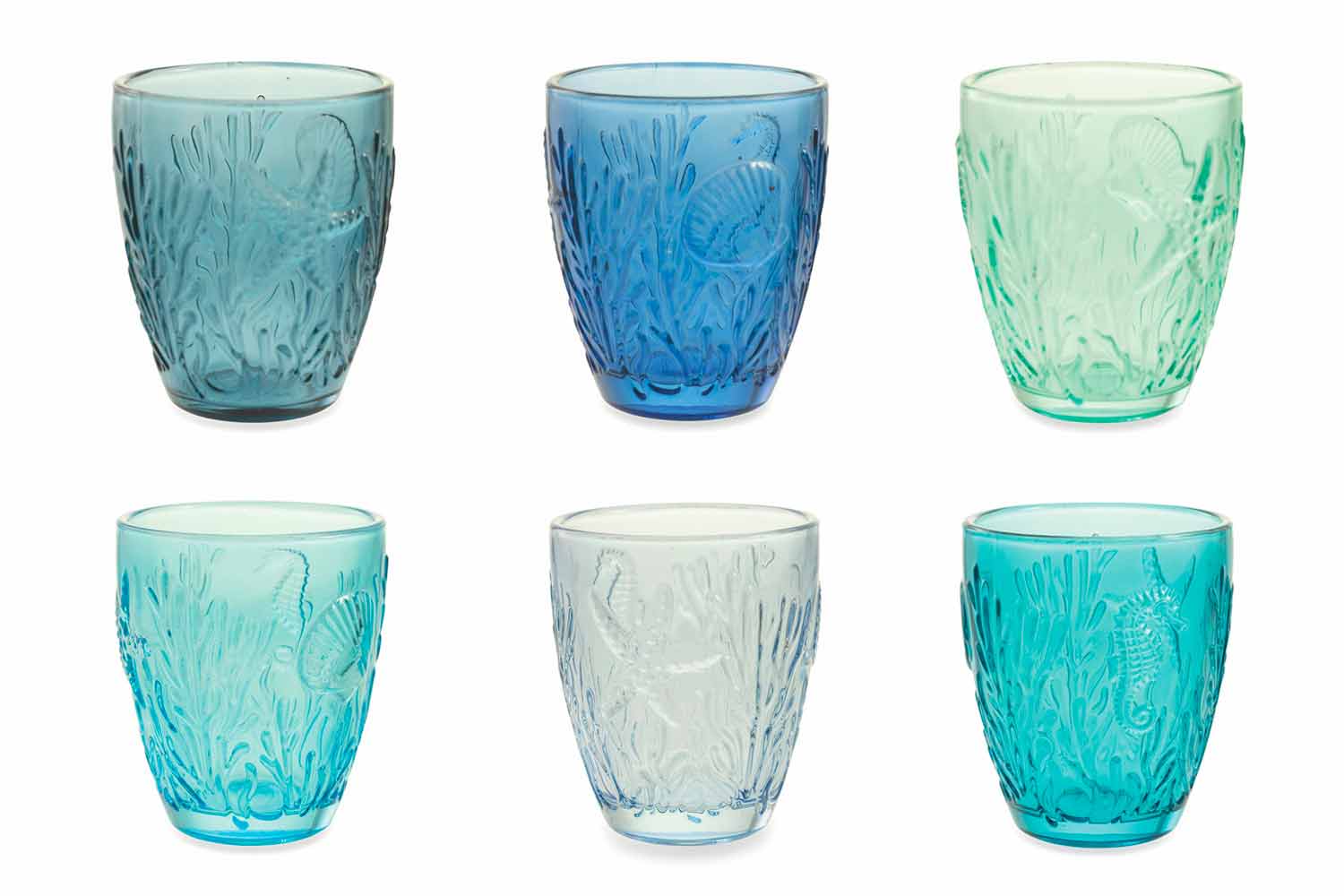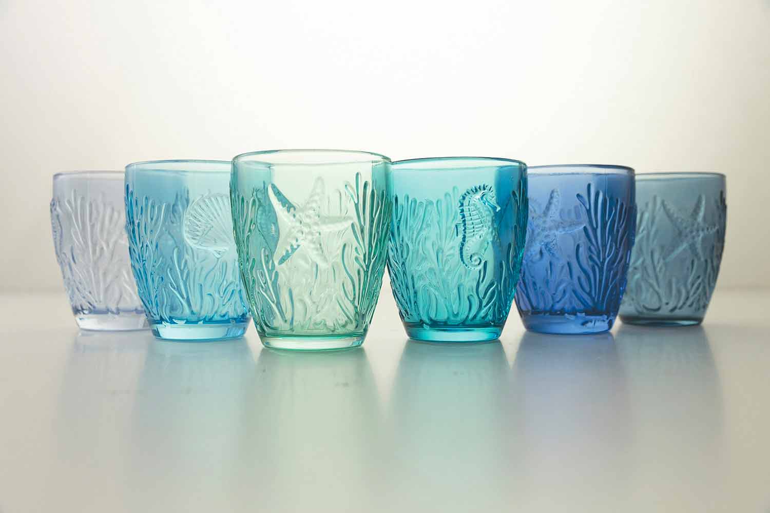 Shtë një shërbim i syzeve që jo vetëm që frymëzohet nga deti , por e merr atë përsëri në tërësinë e tij, duke rikonstruktuar në sipërfaqen e jashtme të syzeve bukurinë e tij të thjeshtë dhe të pa kontaminuar: yll deti, predhat, algat dhe koralet janë gdhendur imët për të krijuar një efekt xhevahire fine dhe i rafinuar. Një bukuri e përjetshme e aftë për të magjepsur darkat me nuancat e saj të freskëta nga ujiblu në jeshil që bëhen protagonistët e tryezës, duke përhapur një atmosferë relaksuese dhe detare në mjedis. Materiali luan një rol vendimtar: transparenca e qelqit është e kombinuar me konceptin e ujit kristal të pastër të detit.