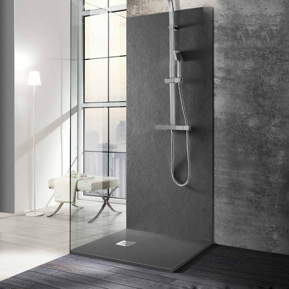 Tabaka moderne dushi e bërë nga rrëshirë dhe e karakterizuarme një përfundim të veçantë me efekt guri . Plotësoni me hekura çeliku dhe kullojeni. Një stil i thjeshtë dhe linjat thelbësore karakterizojnë të gjithë dizajnin e produktit duke lejuar që të përqendrohet vëmendja në strukturën e veçantë të aftë të shprehë qëndrueshmëri, duke sjellë në mendje bukurinë dhe madhështinë e natyrës. Së bashku me këtë tipar themelor të produktit, struktura e tij me madhësi të vogël është konceptuar dhe dizajnuar për t'ju lejuar të arrini edhe zonat më të vogla të banjës në një mënyrë të rafinuar dhe të stilit të lartë, ku për këtë arsye nuk do të jetë e nevojshme të hiqni dorë gjithashtu nga modeli i përparuar si funksionalitet i pashoq.