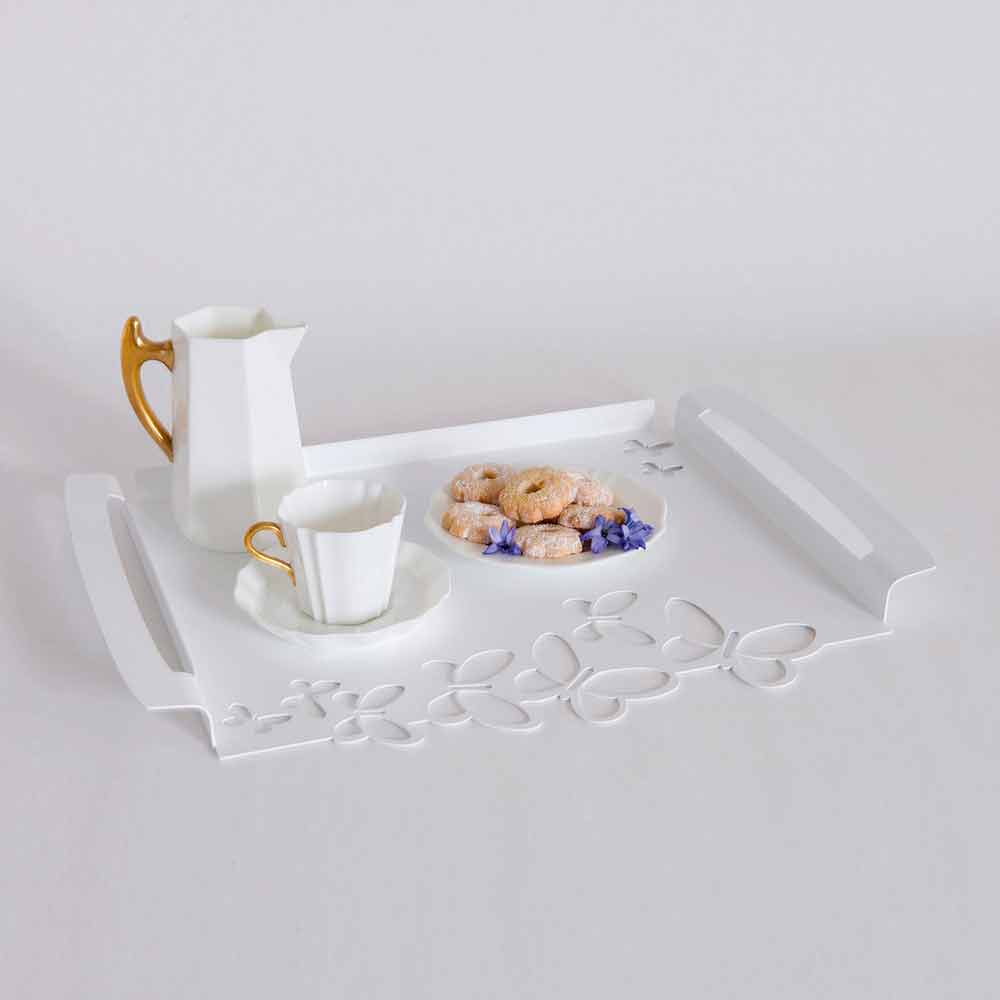 Tabaka moderne drejtkëndore e shërbimit në hekur të bardhë, bezhë ose fildishi të punuar me qira në Itali.